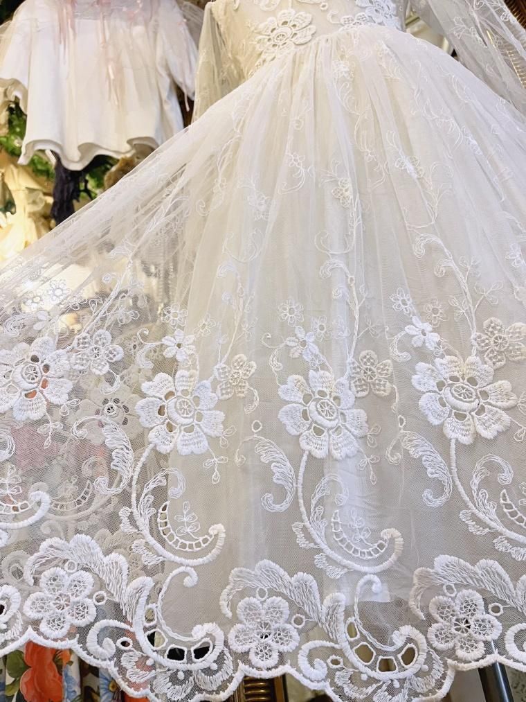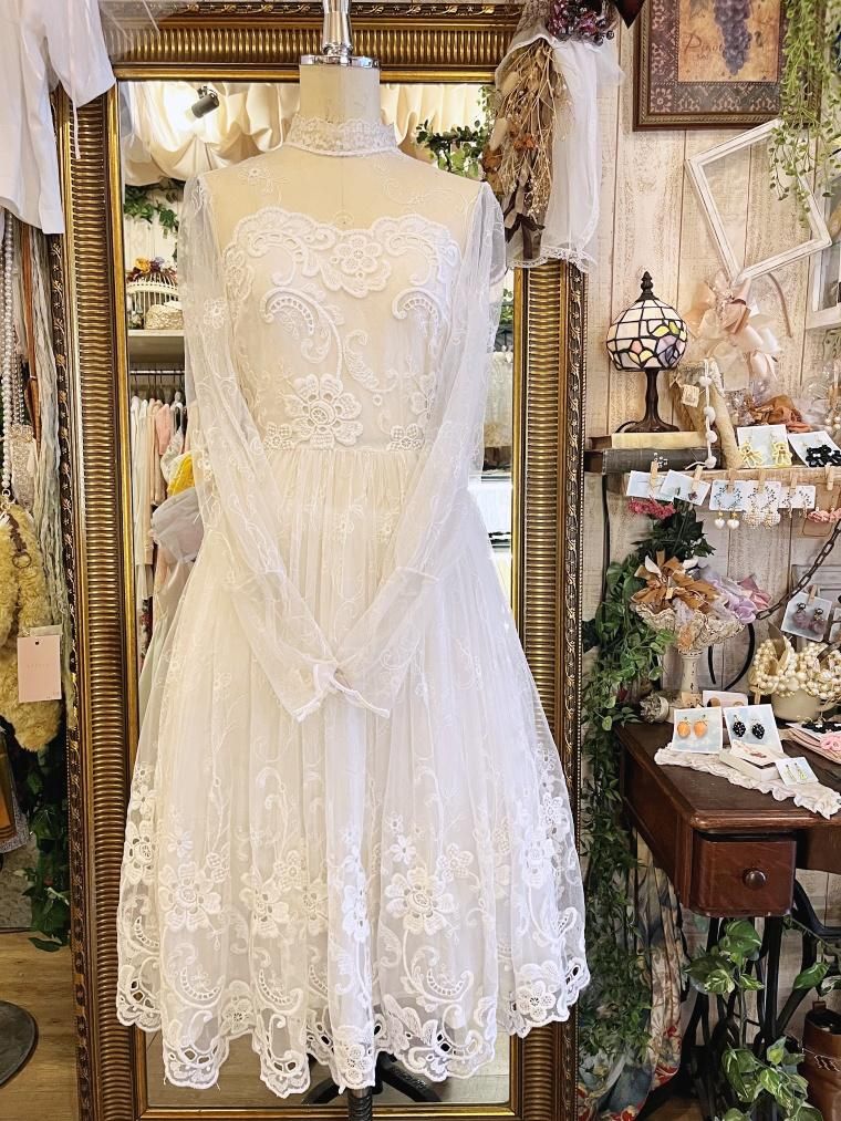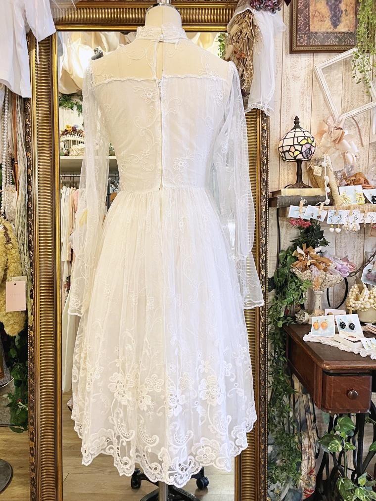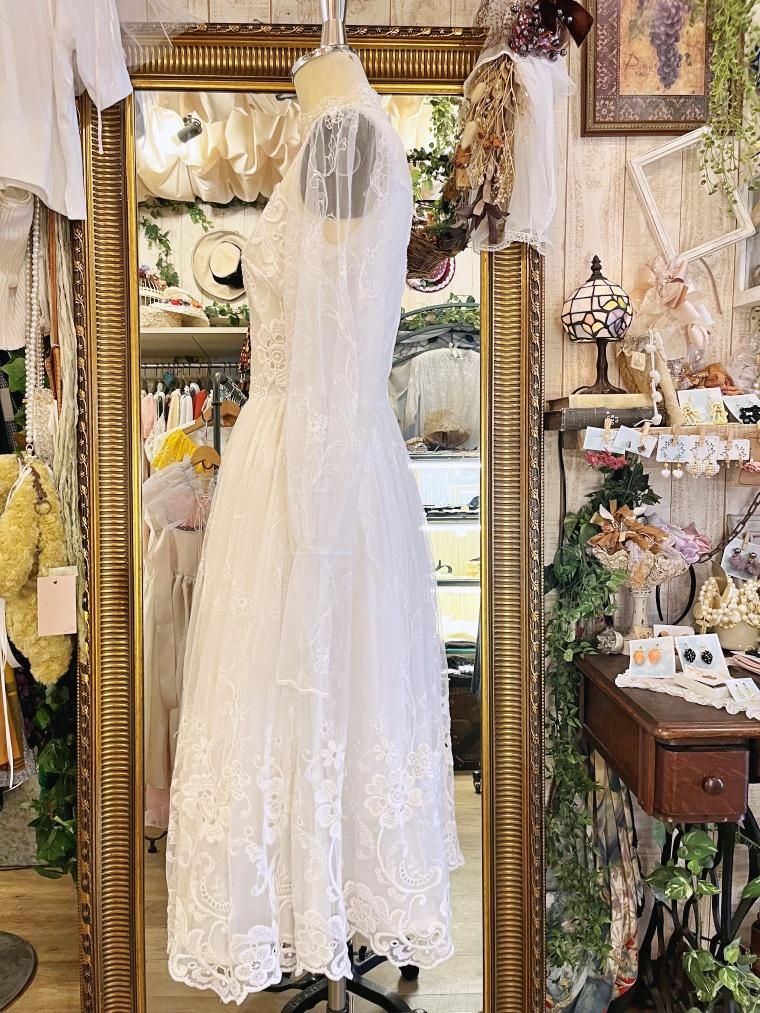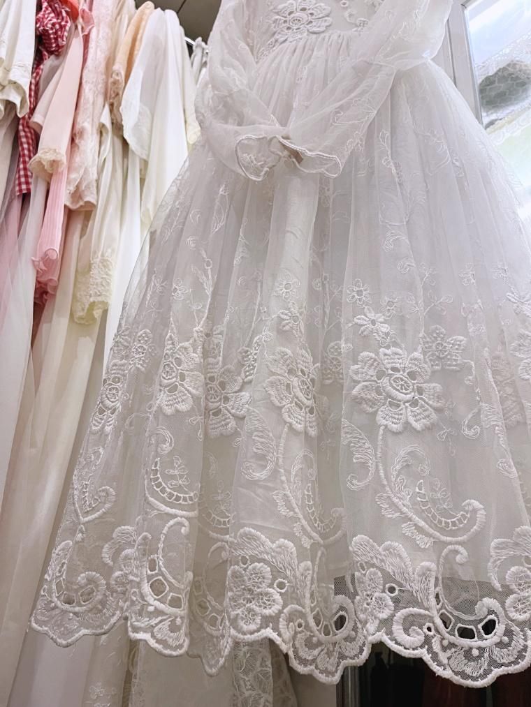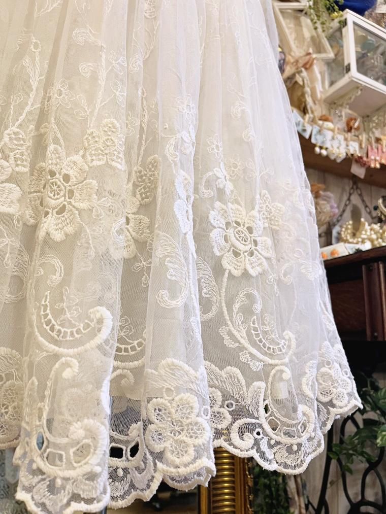 柔らかなソフトチュール素材に花柄の刺繍が上品な印象のホワイトワンピースです。