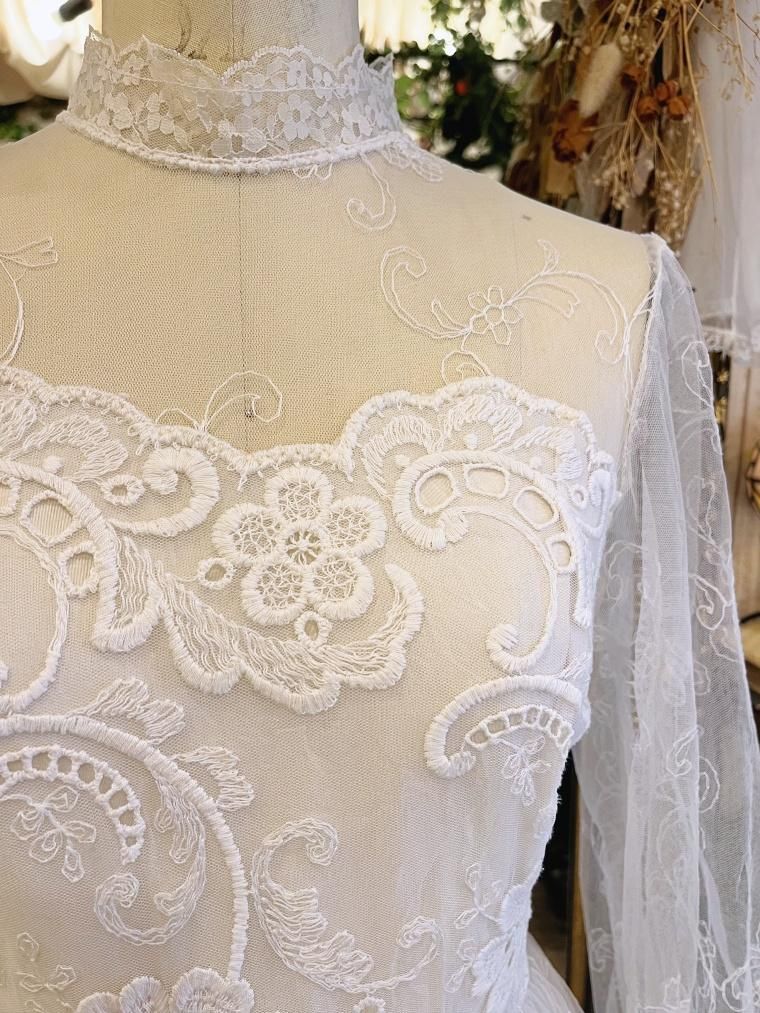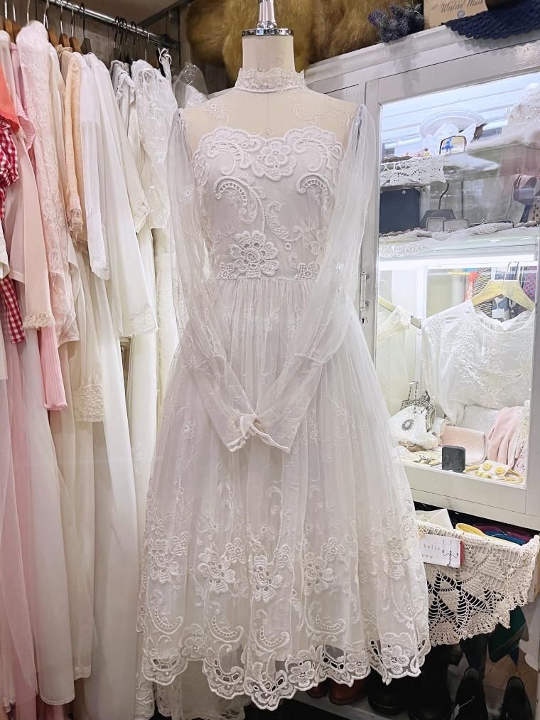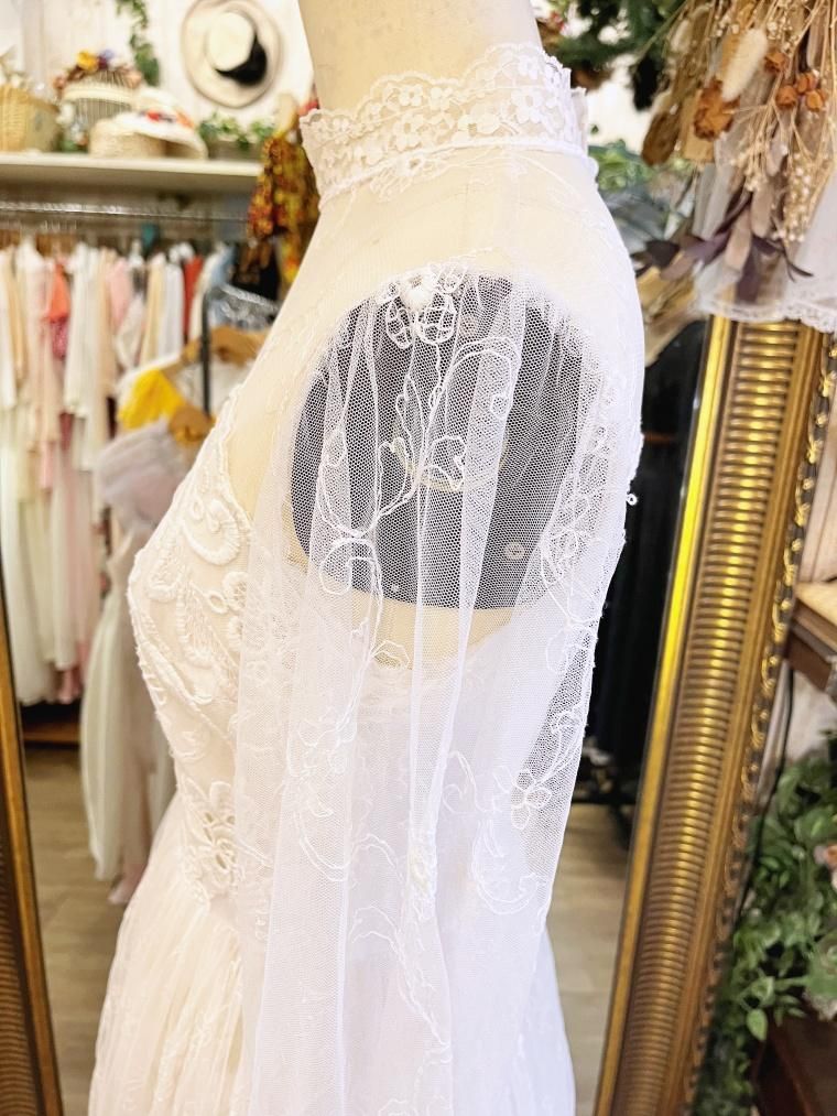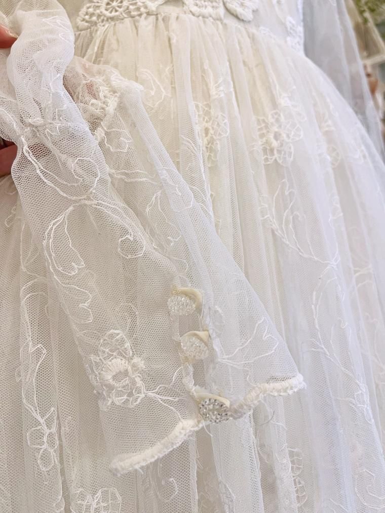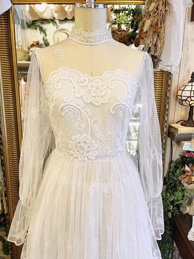 柔らかなソフトチュール素材に花柄の刺繍が上品な印象のホワイトワンピースです。