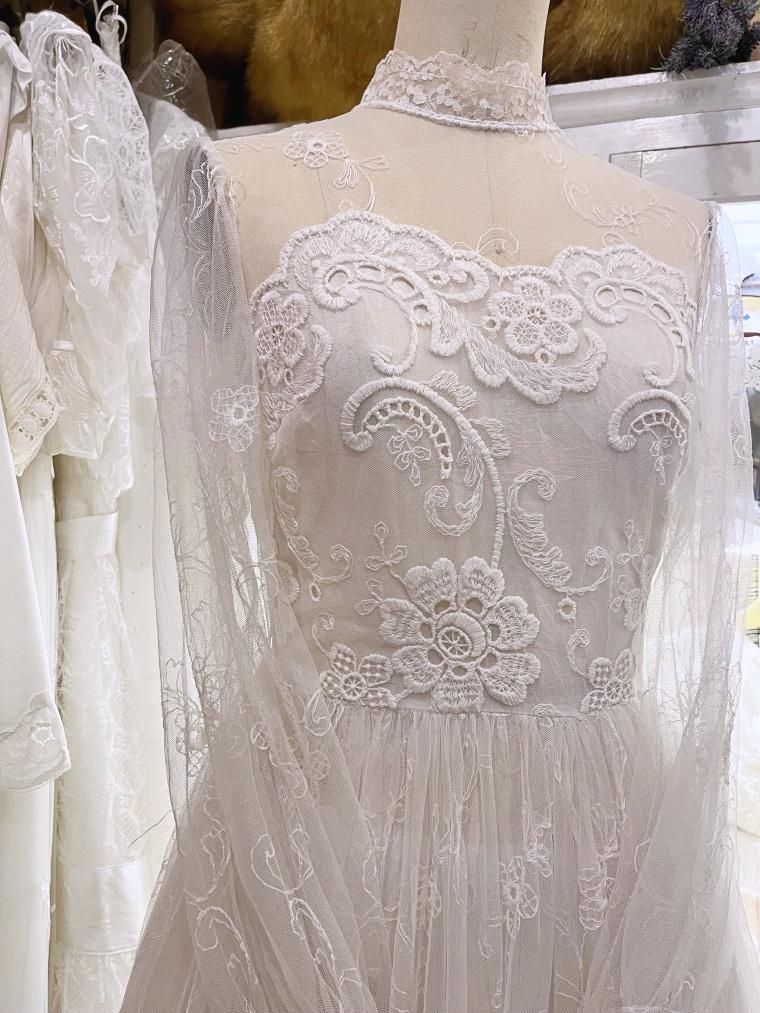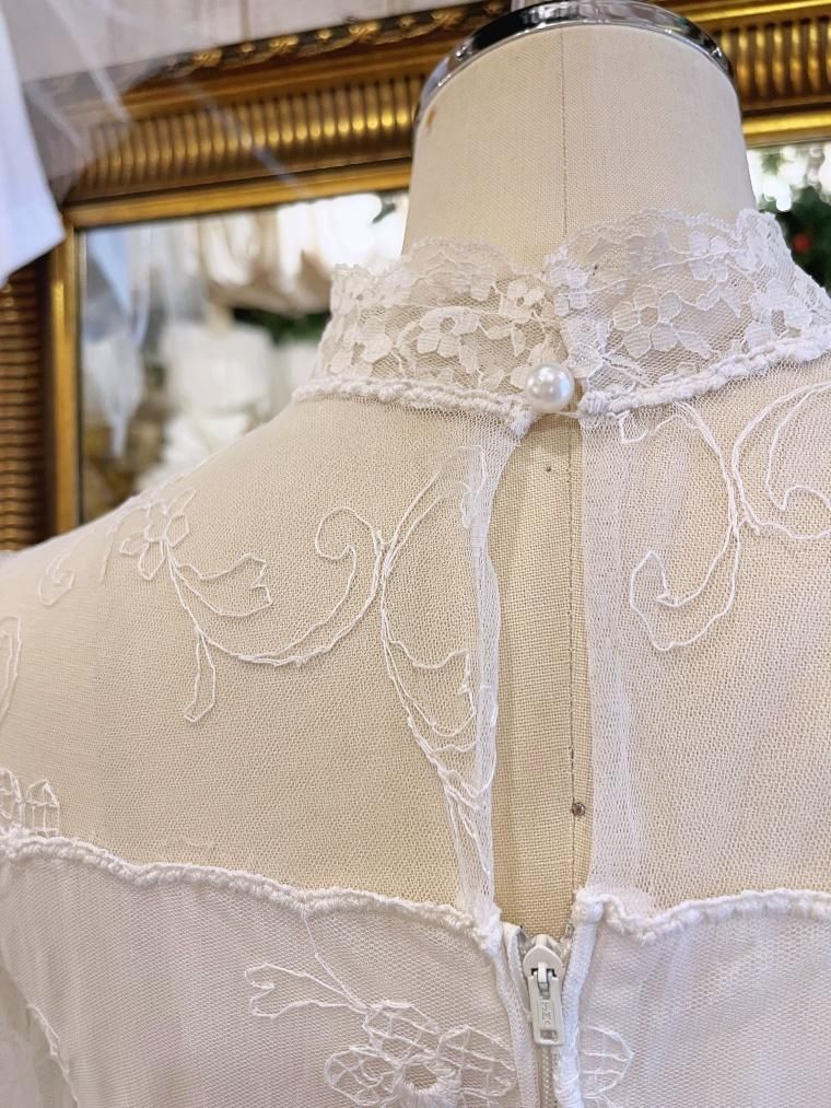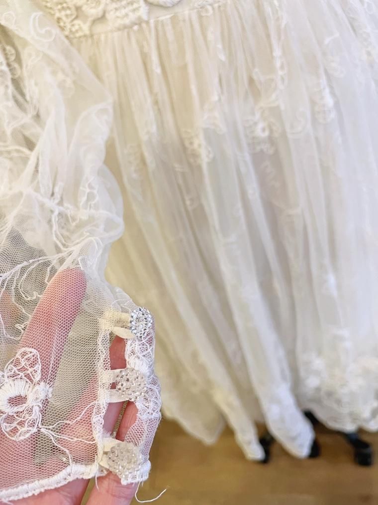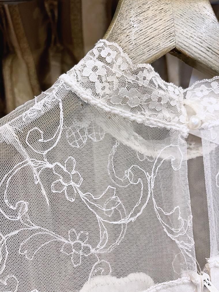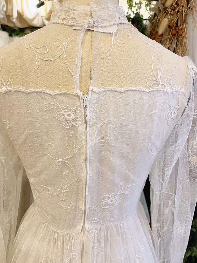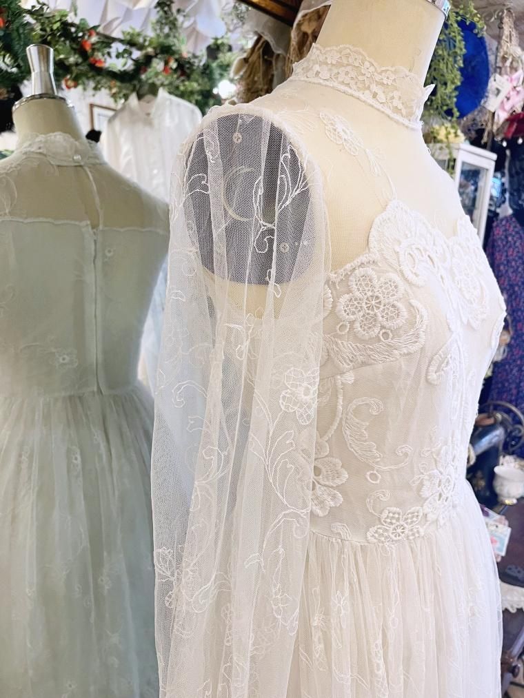柔らかなソフトチュール素材に花柄の刺繍が上品な印象のホワイトワンピースです。