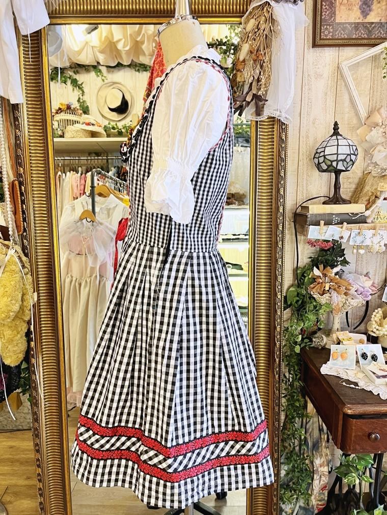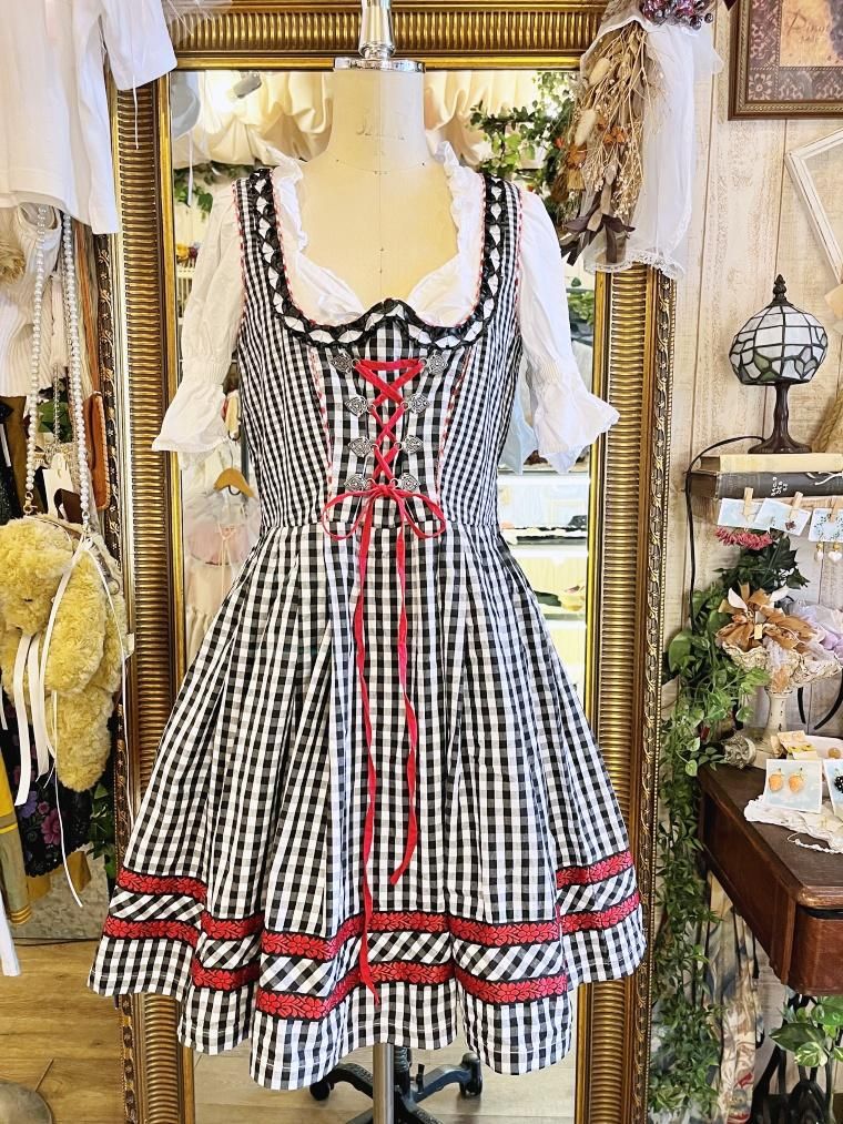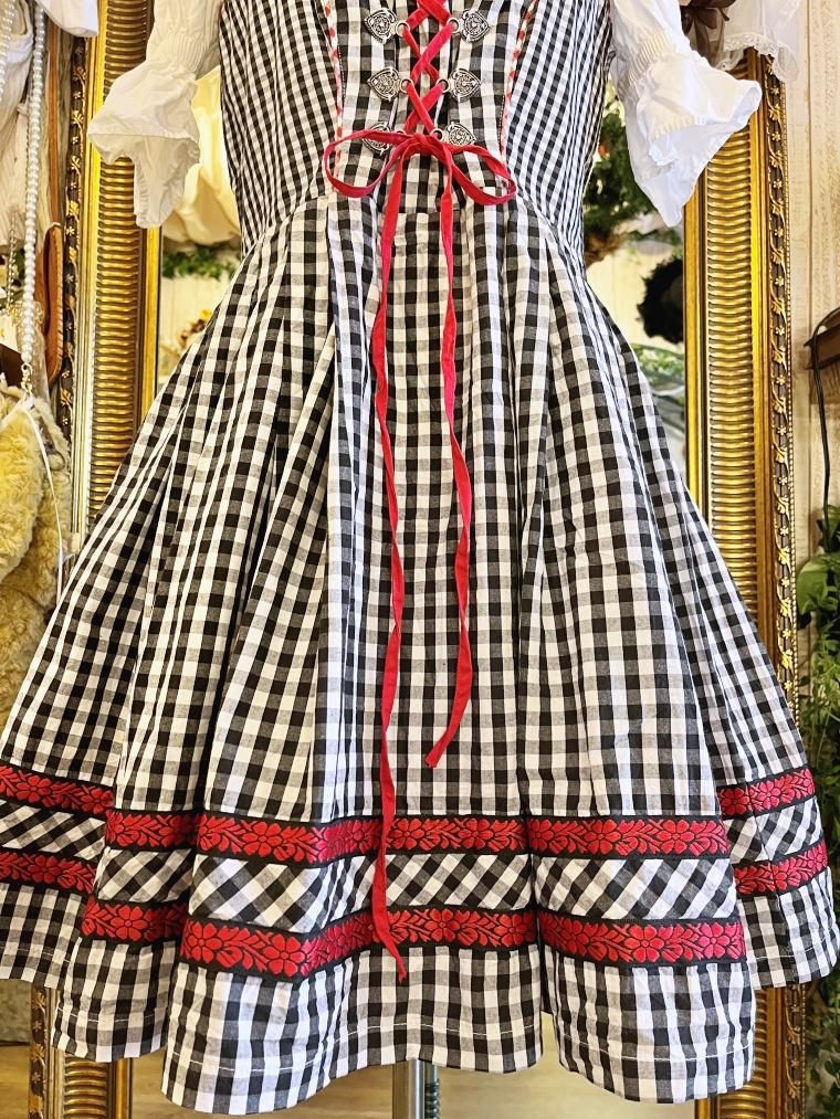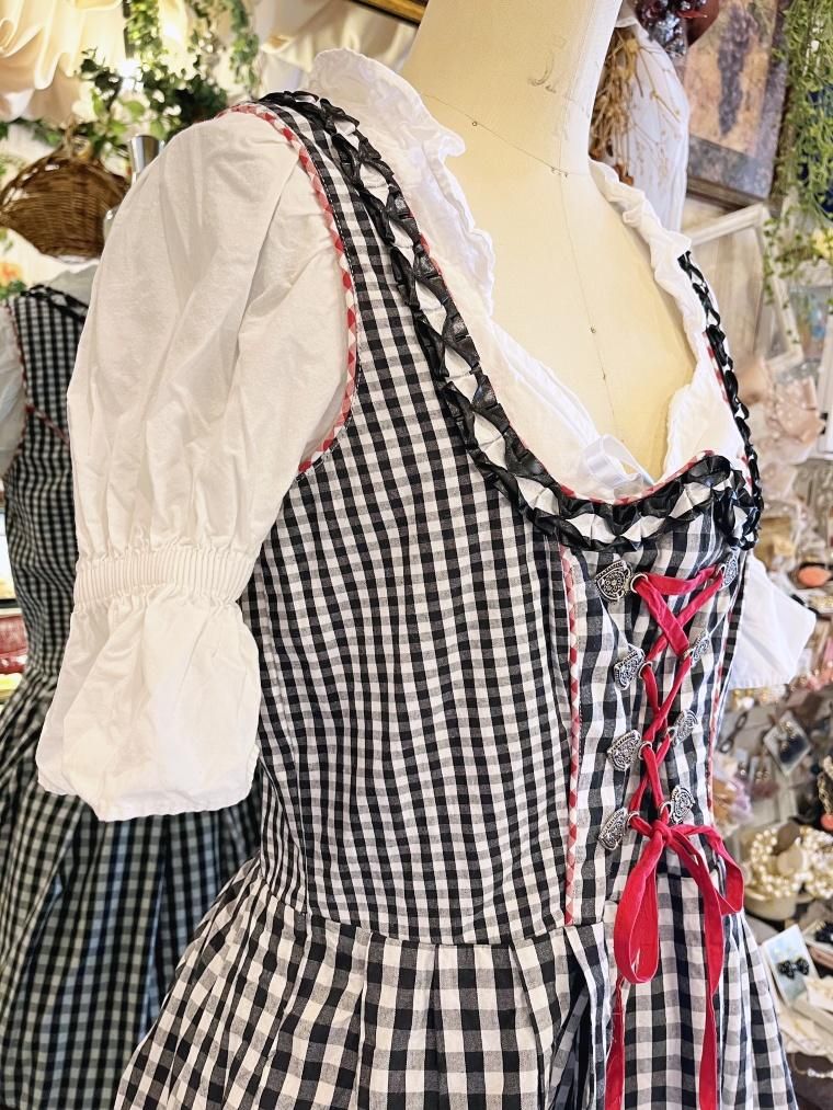 Vintage レースアップギンガムチェック柄ミモレ丈ディアンドル 24068