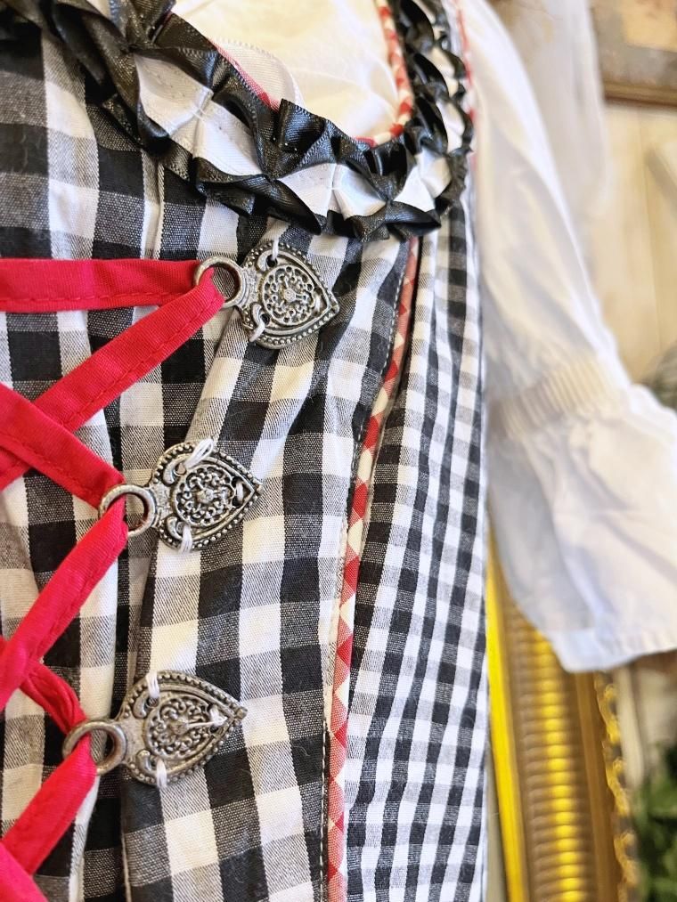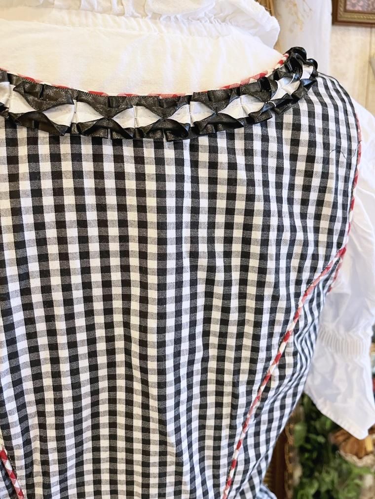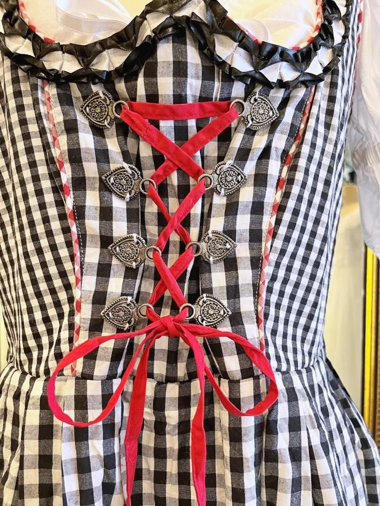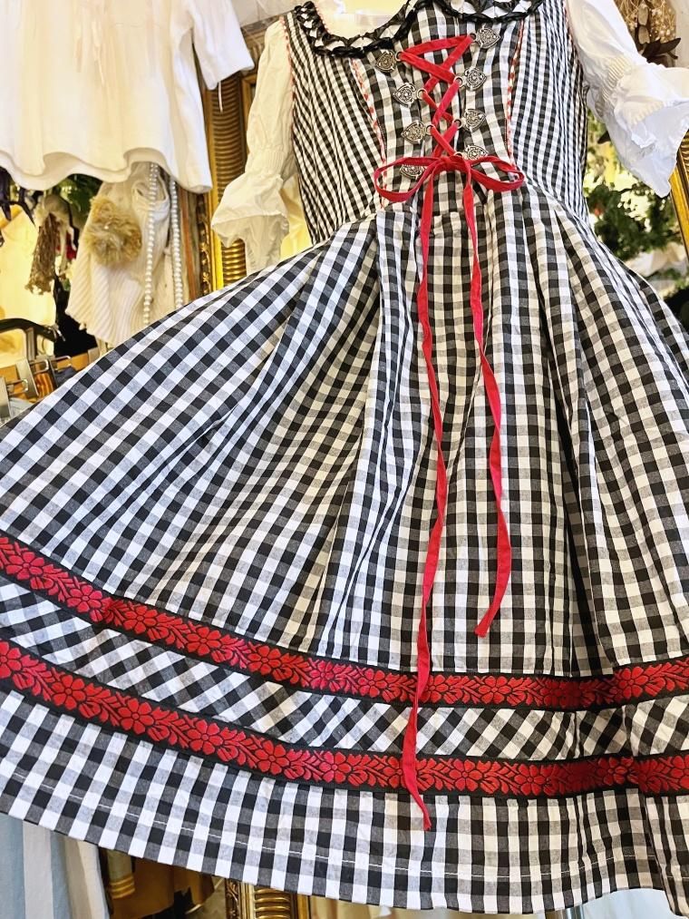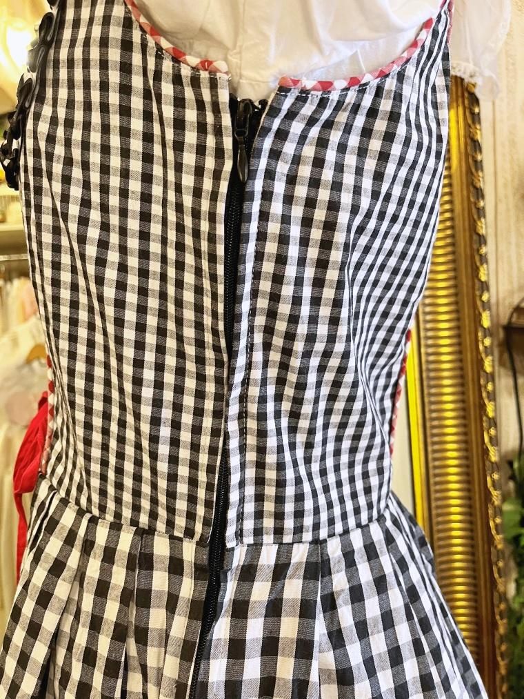 Vintage レースアップギンガムチェック柄ミモレ丈ディアンドル 24068
