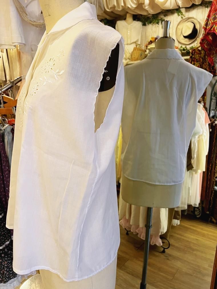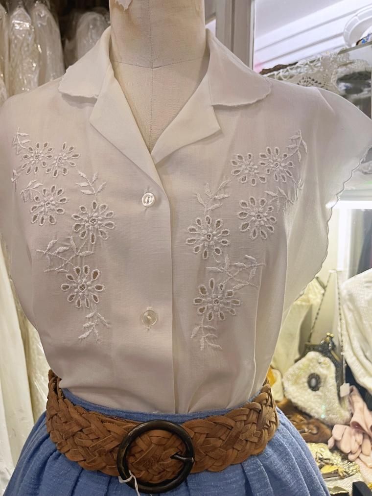 Vintage オープンカラーカットワークレースホワイトブラウス otb2636