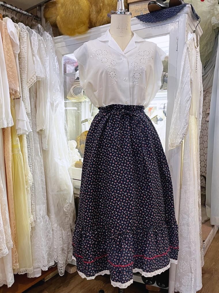 vintage U.S.A. 裾ラッフルフローラルコットンブラックワンピース