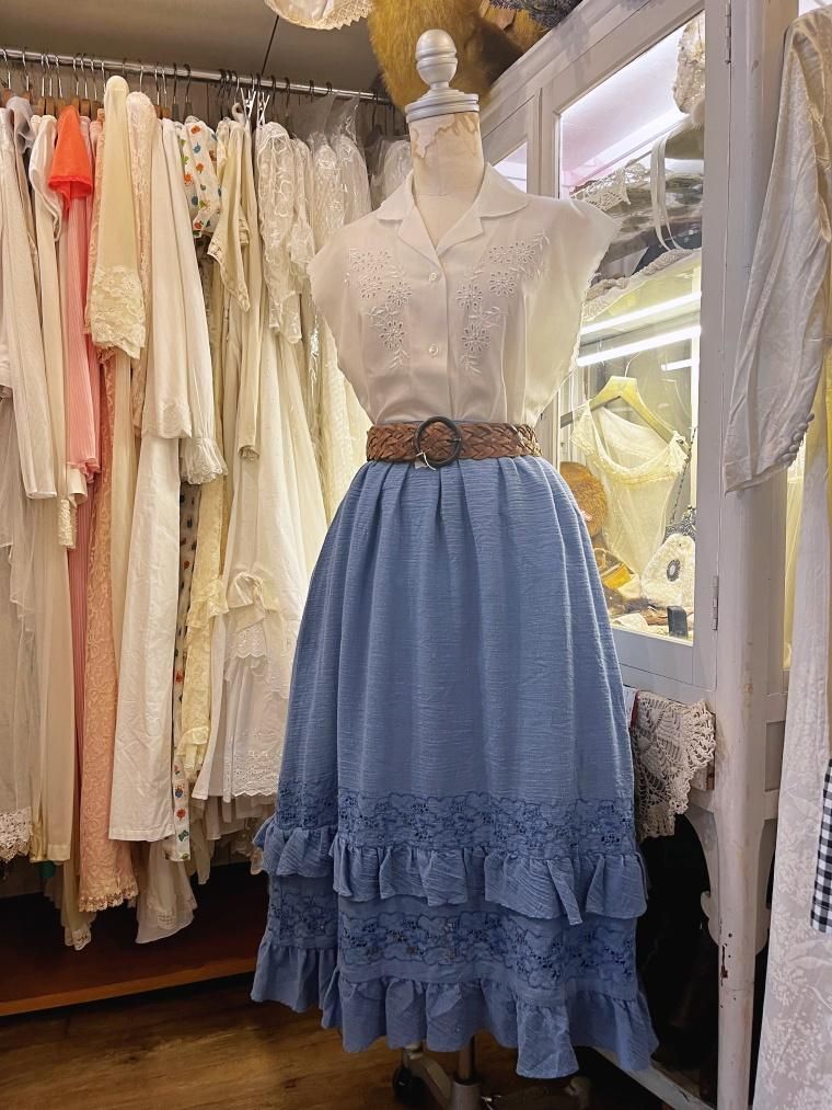 Vintage Nightie 刺繍入りシアーミディアム丈ワンピース