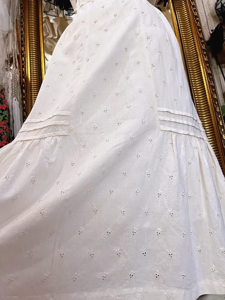 カットワークレースホワイトコットンワンピース