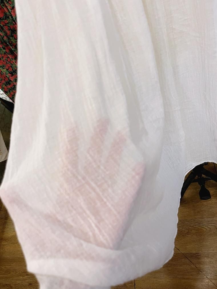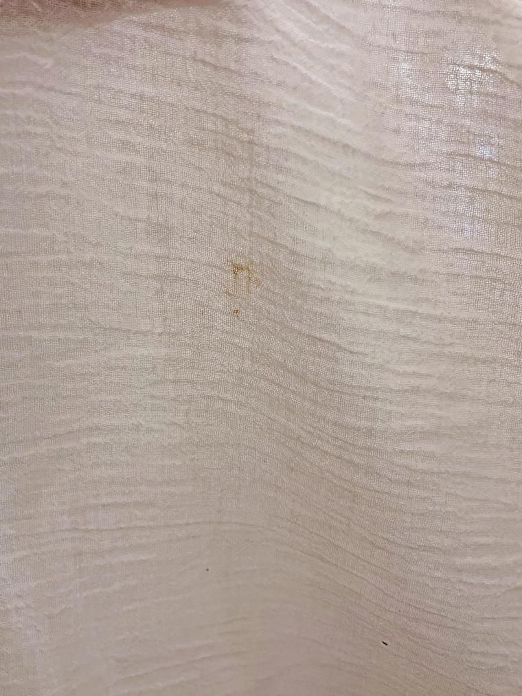 最後の画像のように前身頃の左裾付近にシミがあります。