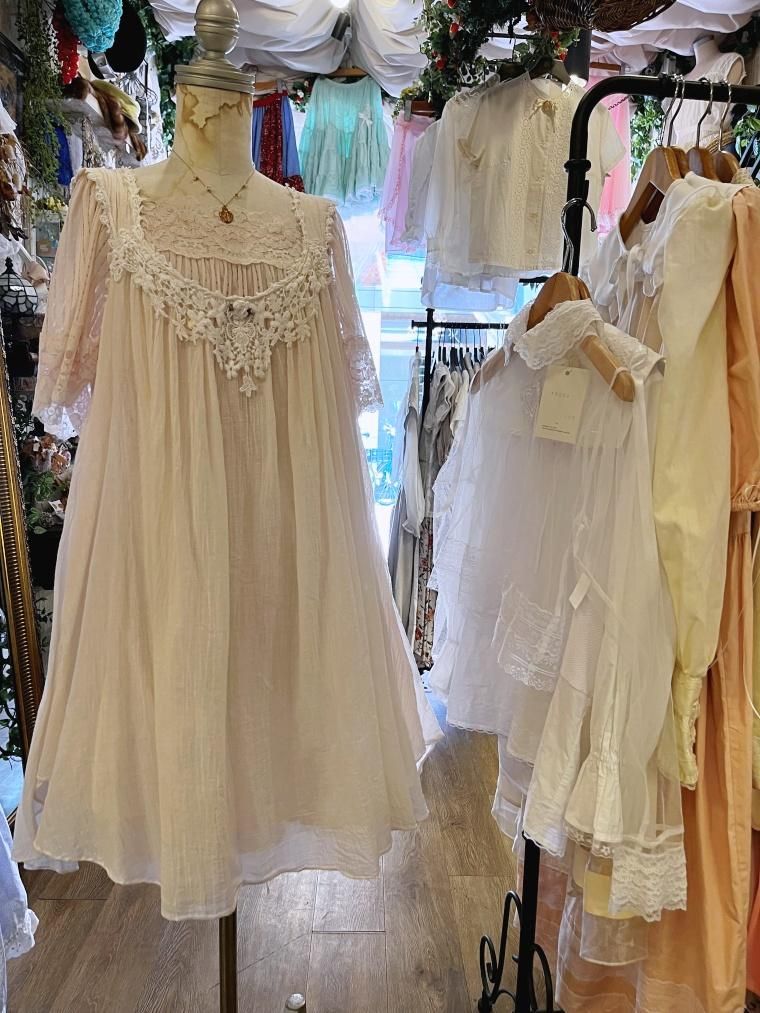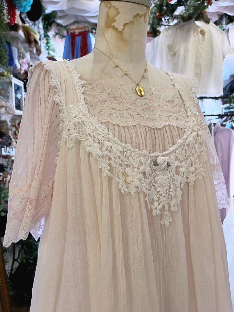 Vintage Nightie 刺繍入りシアーミディアム丈ワンピース