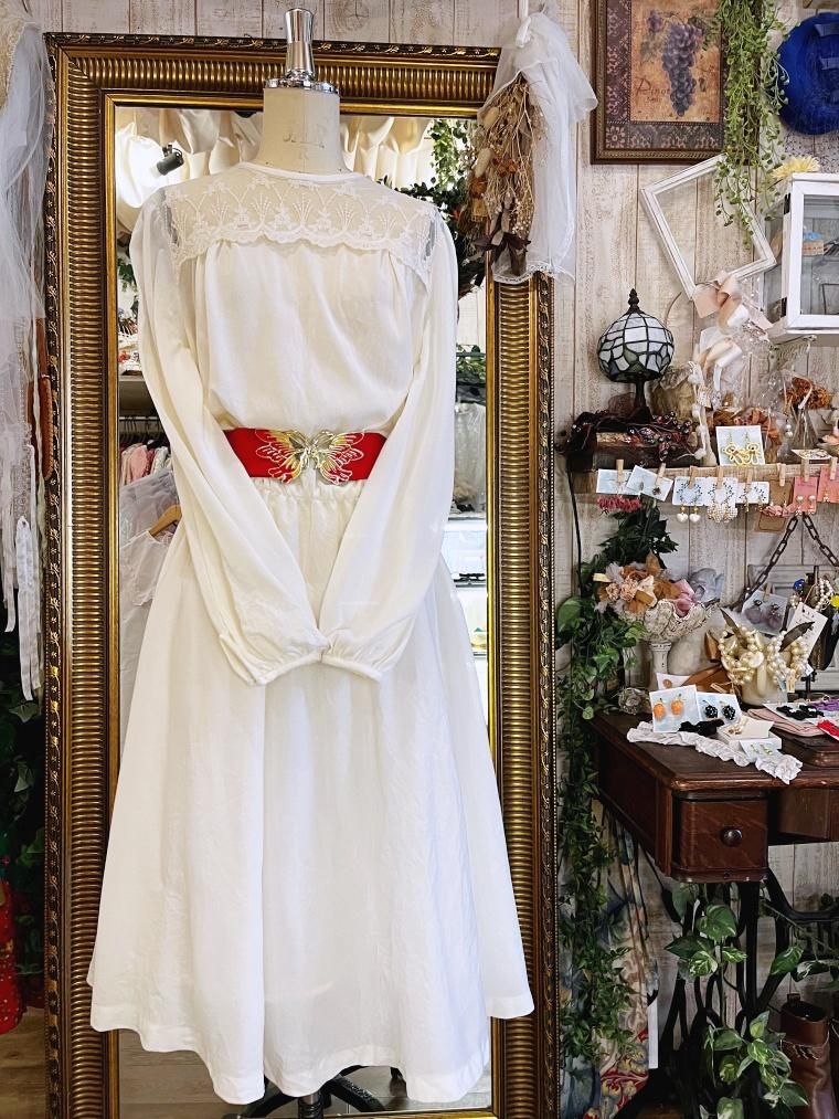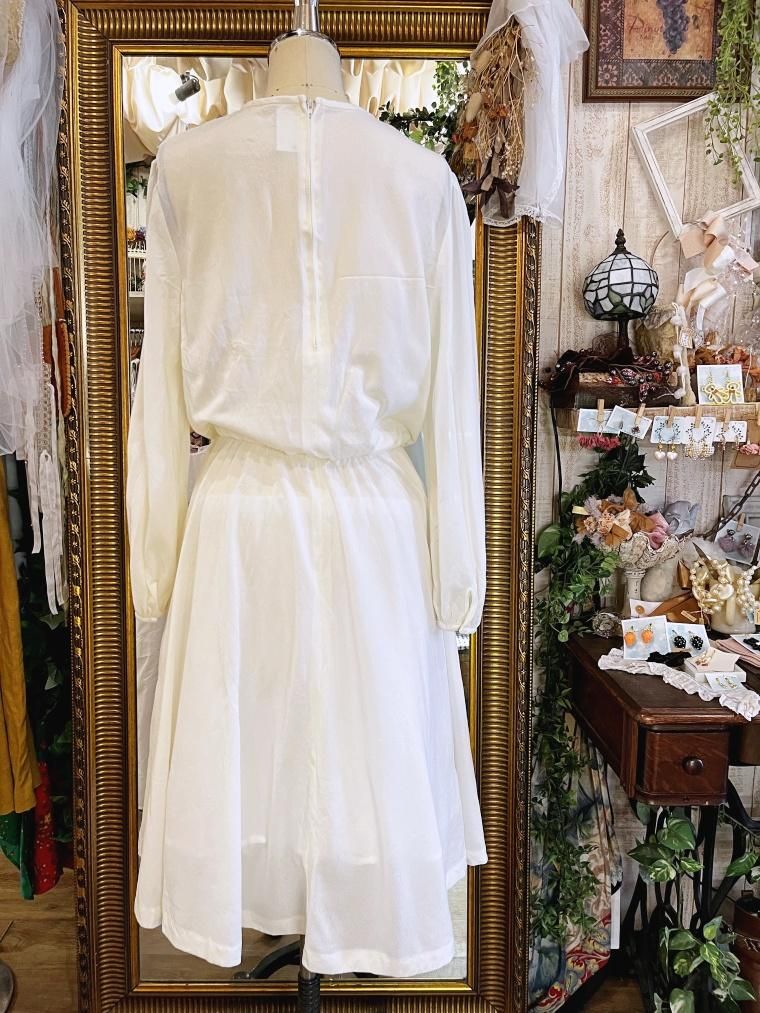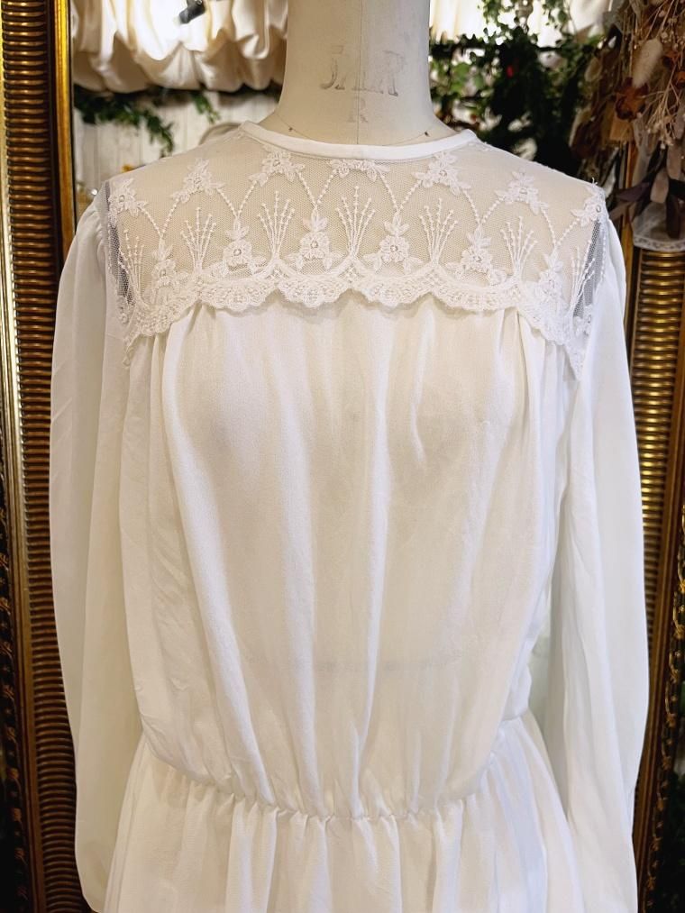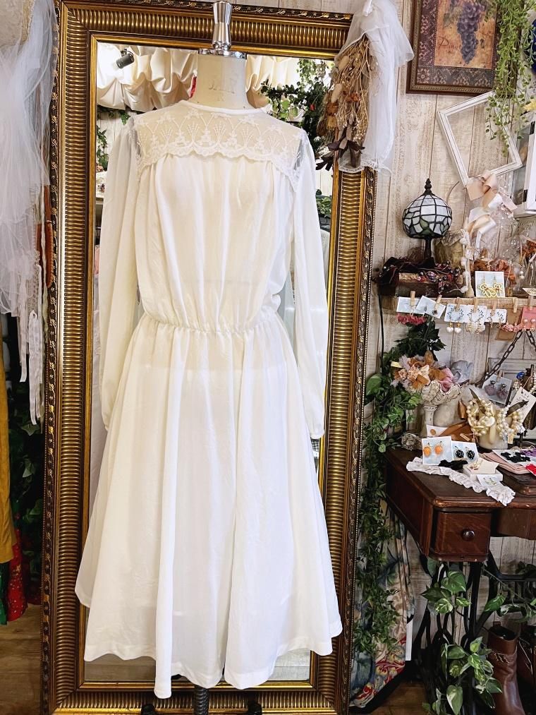 Vintage デコルテレースホワイトワンピース 24075