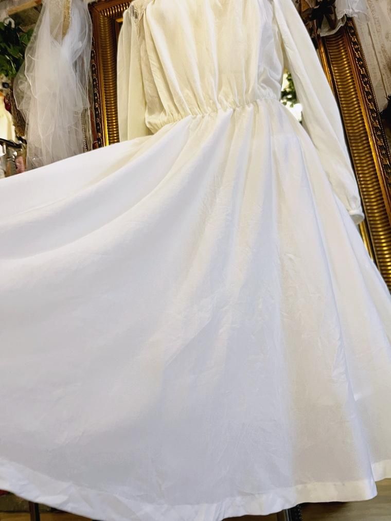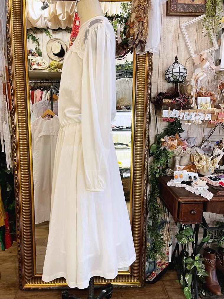 vintage U.S.A. レースカラーレーヨンオフホワイトワンピース