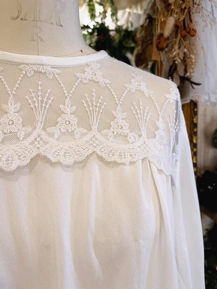 Vintage Nightie 刺繍入りシアーミディアム丈ワンピース