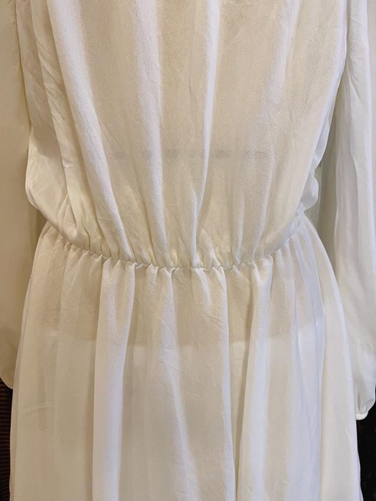 総レースシフォン切り替えホワイトロングワンピース