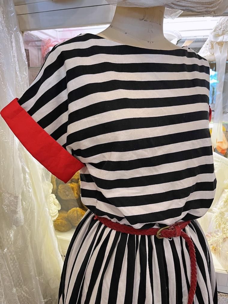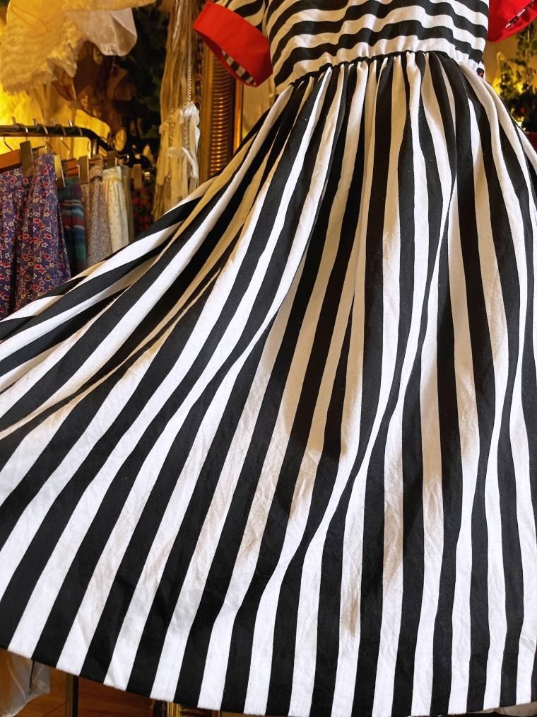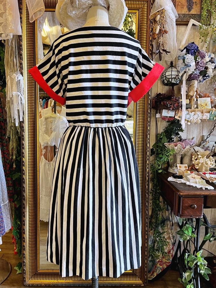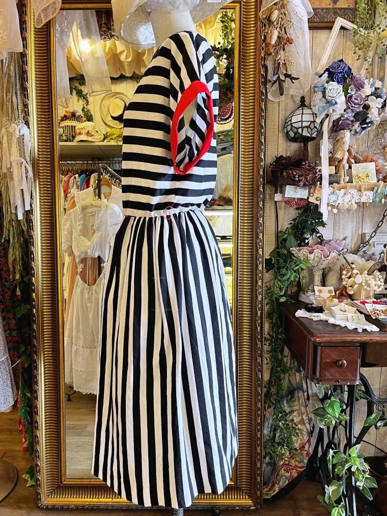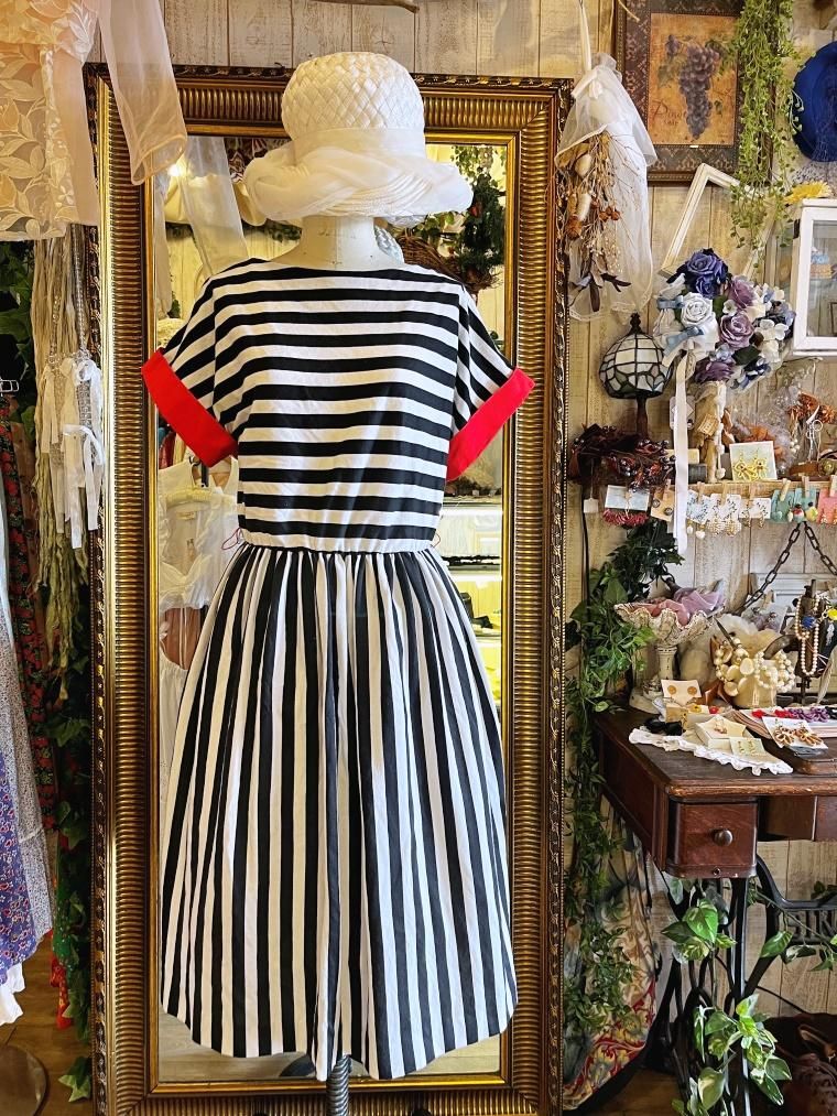 ボーダーとストライプのマリンチックなレーヨンワンピースです。