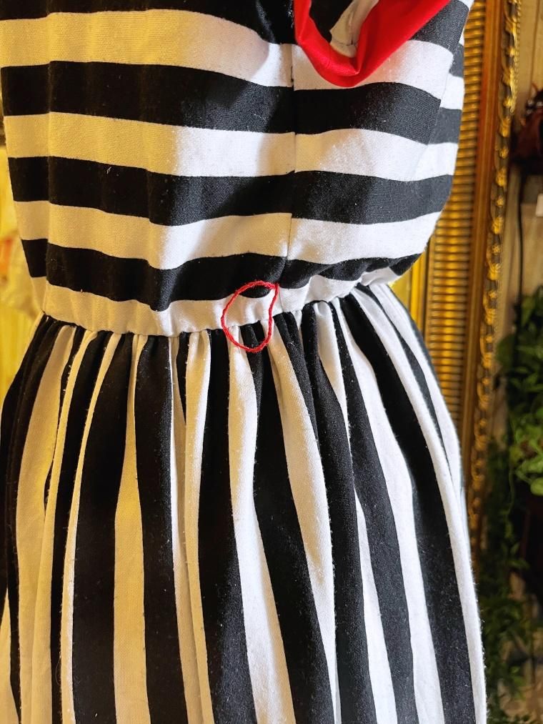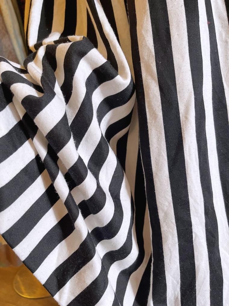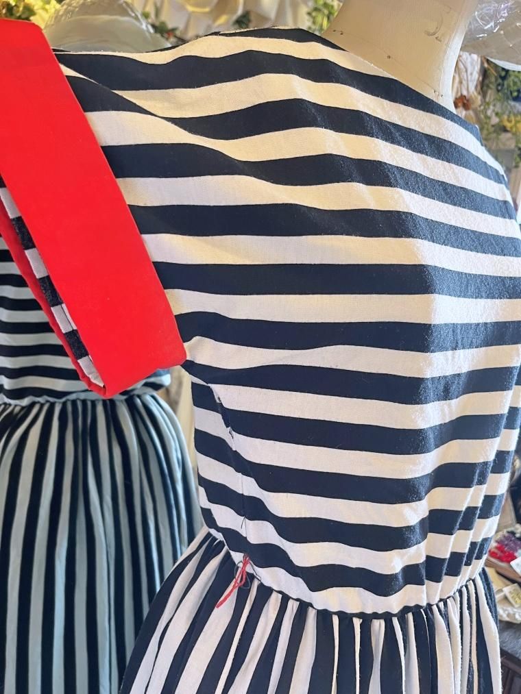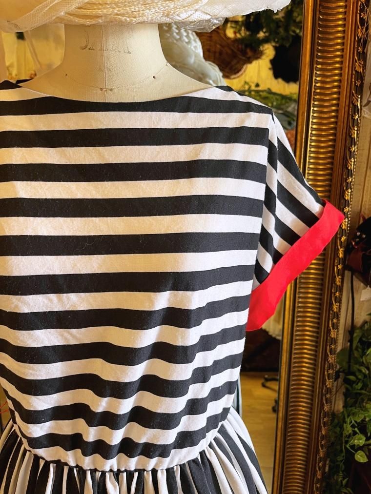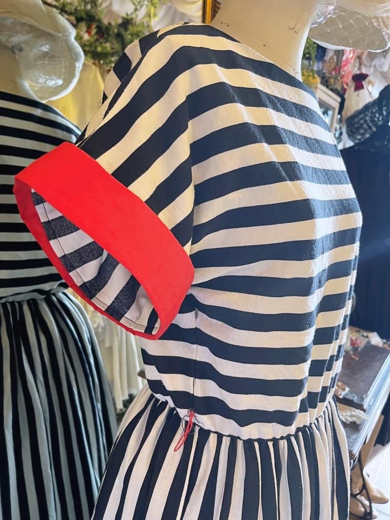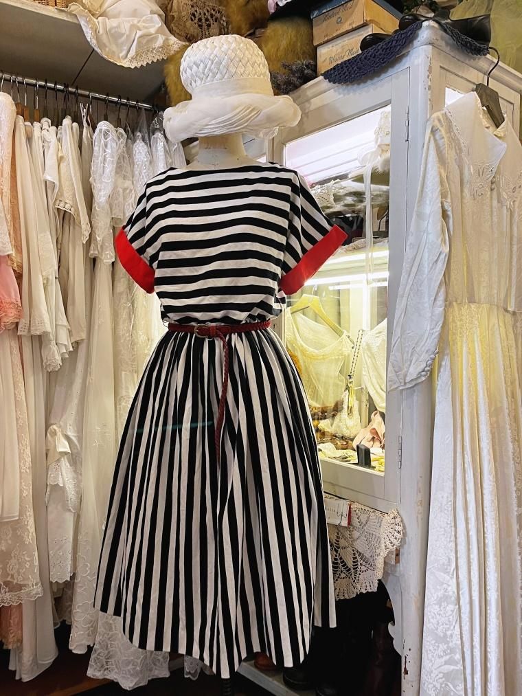ボーダーとストライプのマリンチックなレーヨンワンピースです。