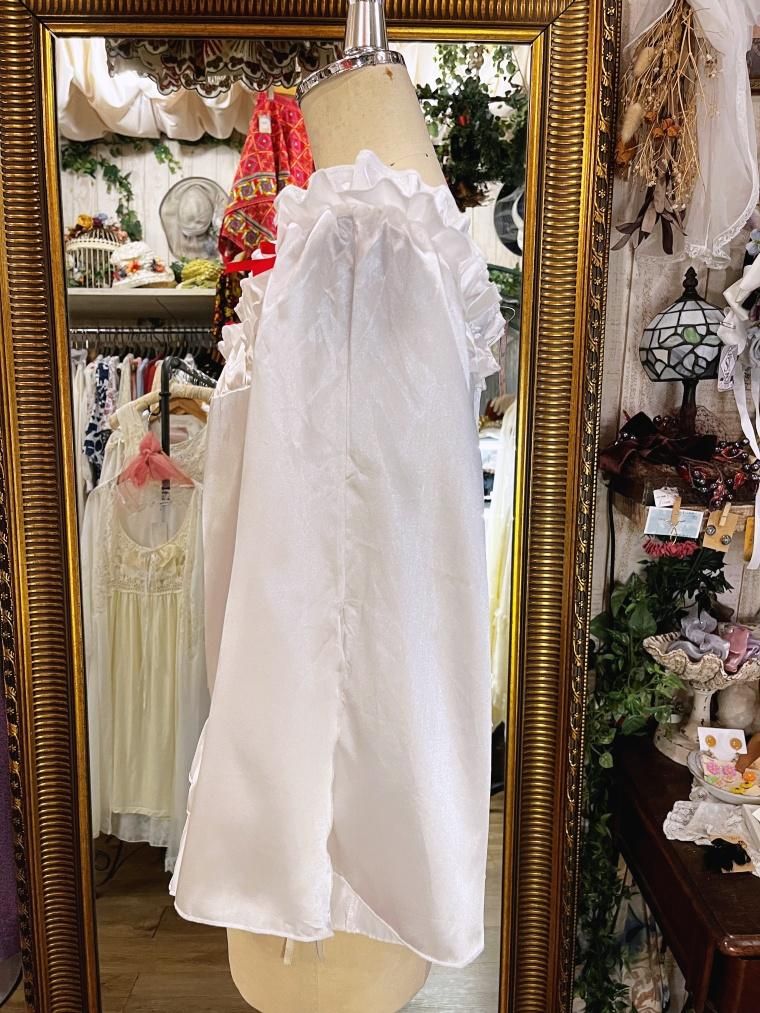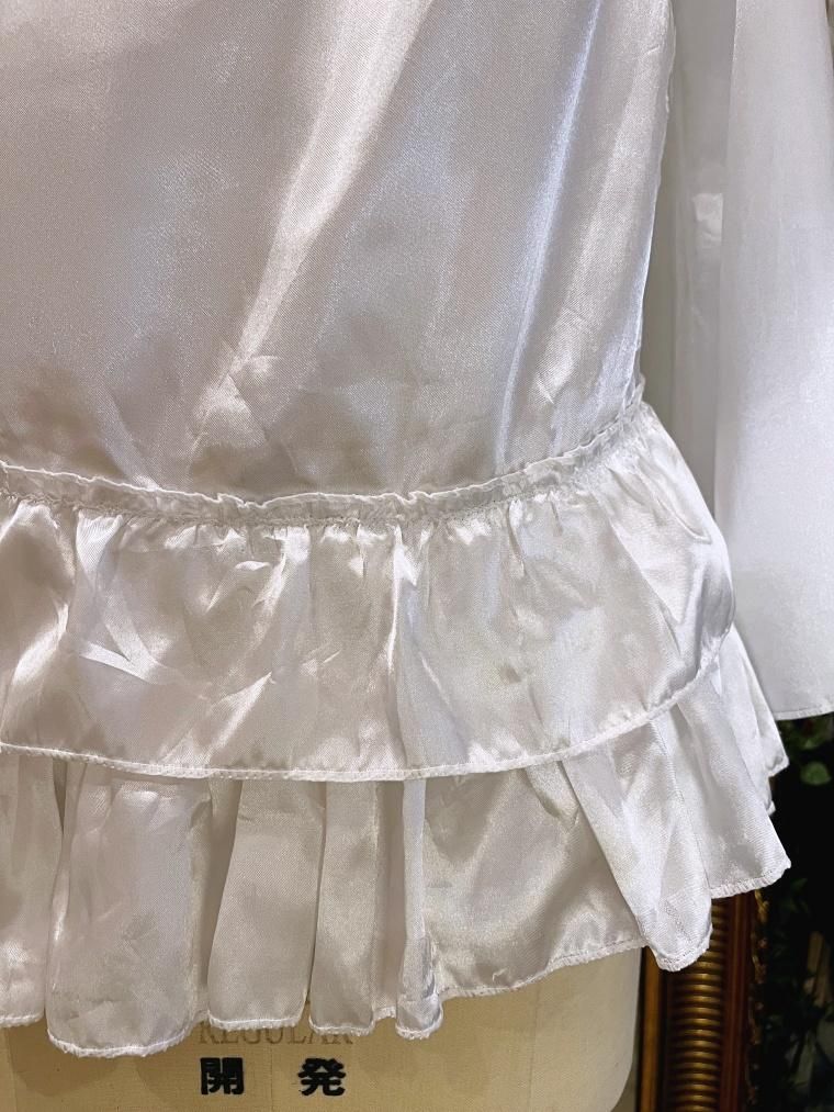 ラッフルフリルシャーリングスリーブホワイトブラウス