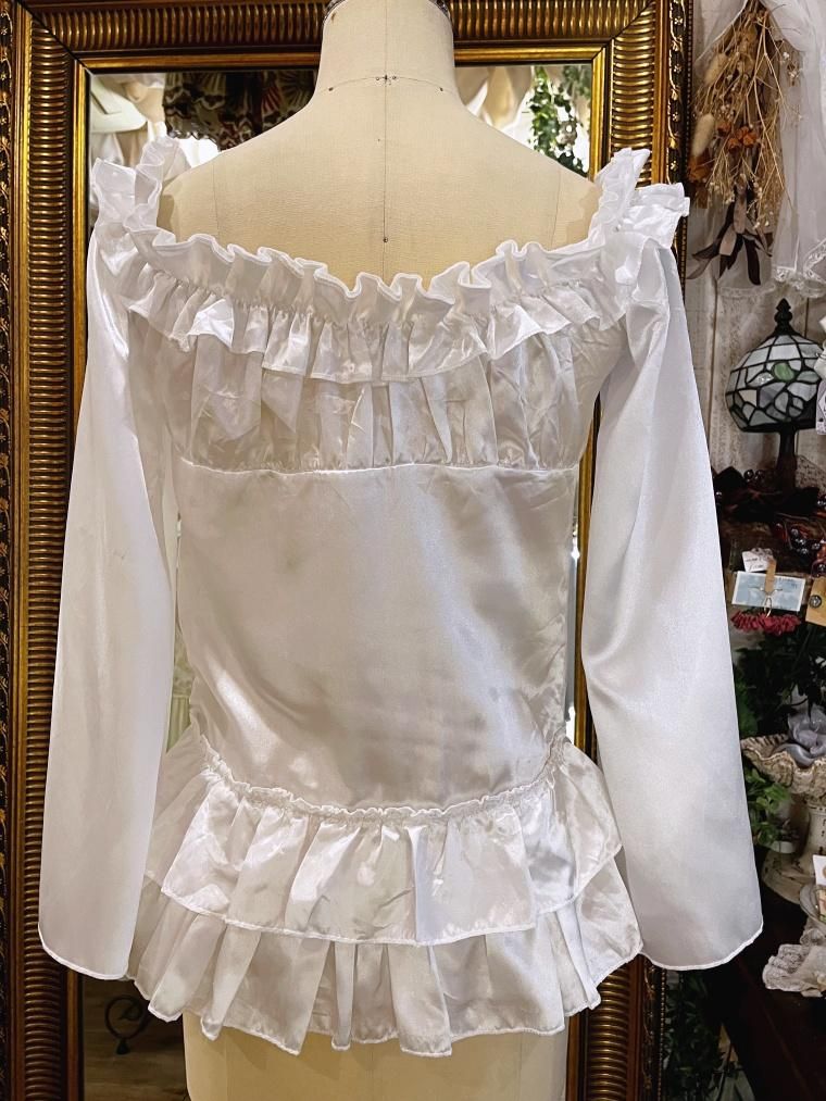 ダブルレースカラーロマンチックホワイトリネンチロルブラウス