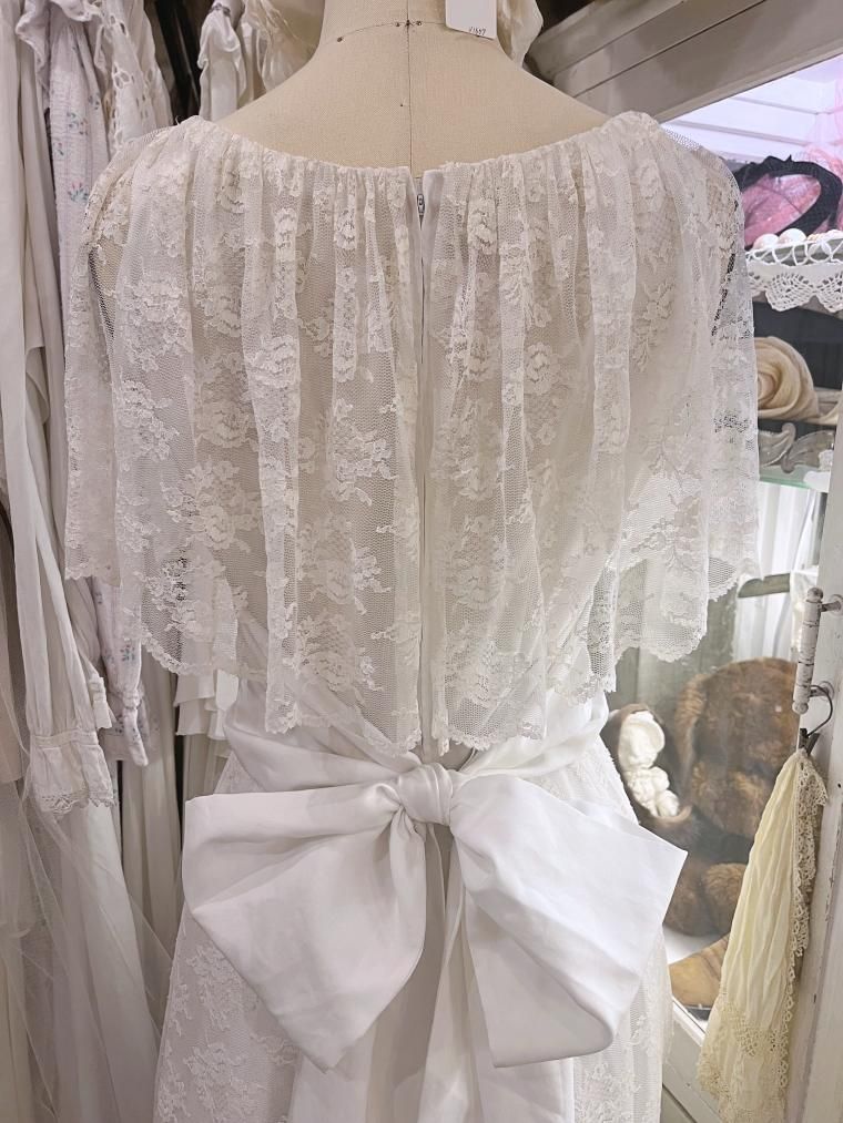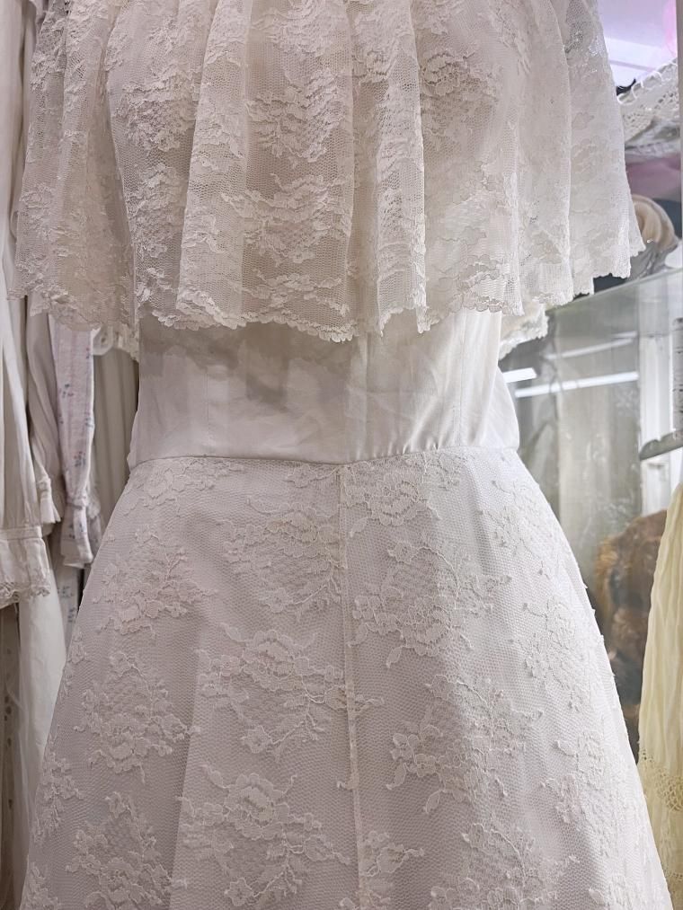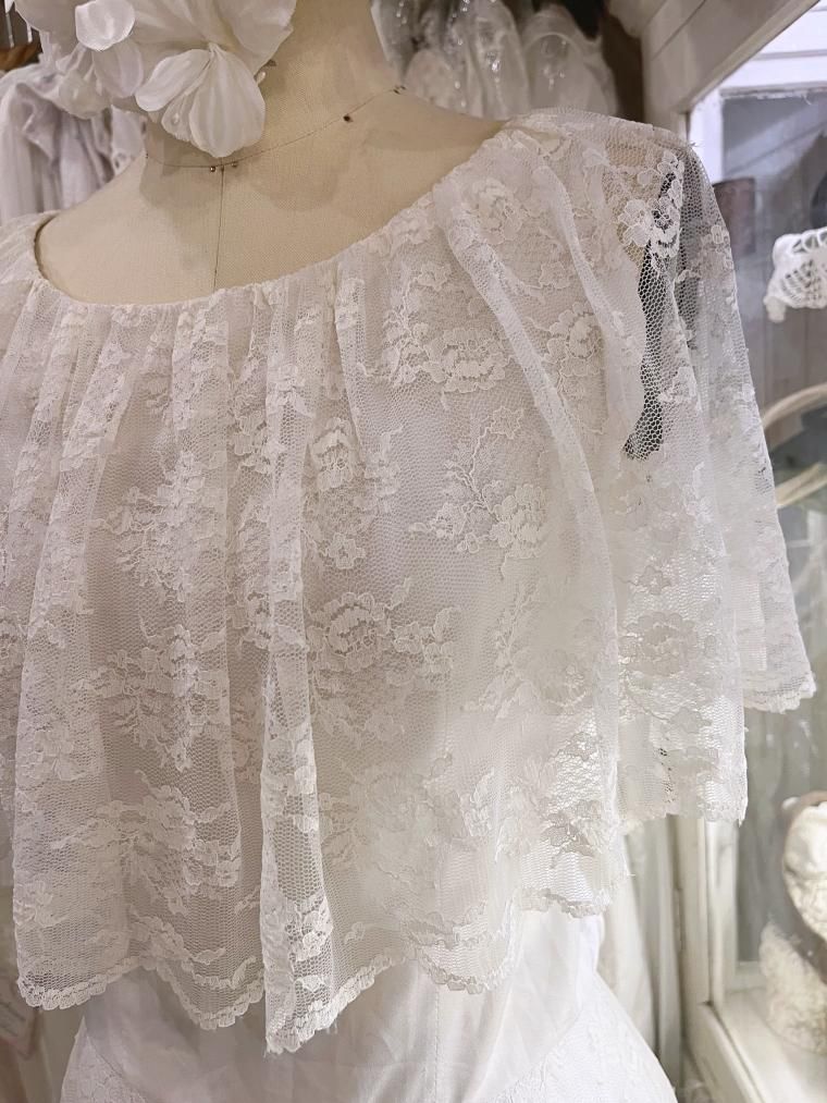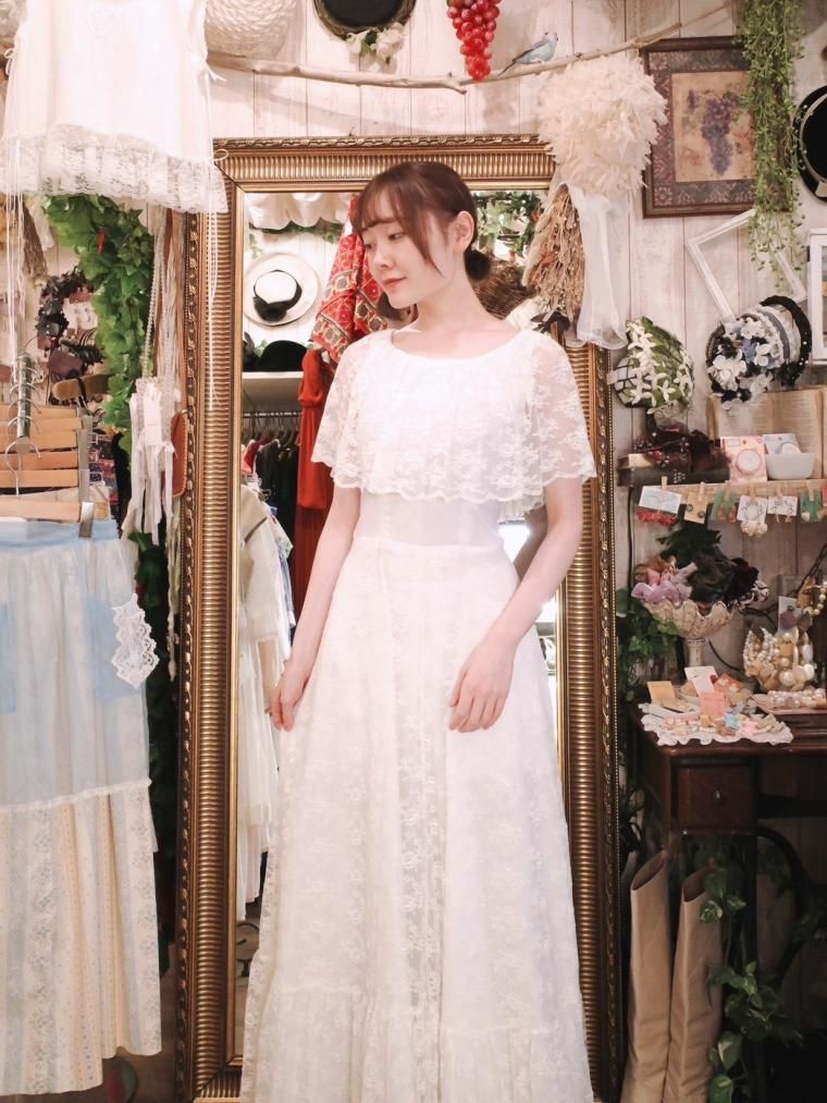 Vintage ケープカラーホワイトレースワンピースドレス u1618