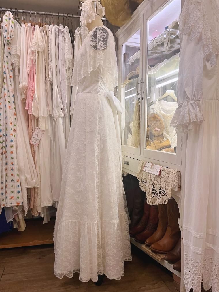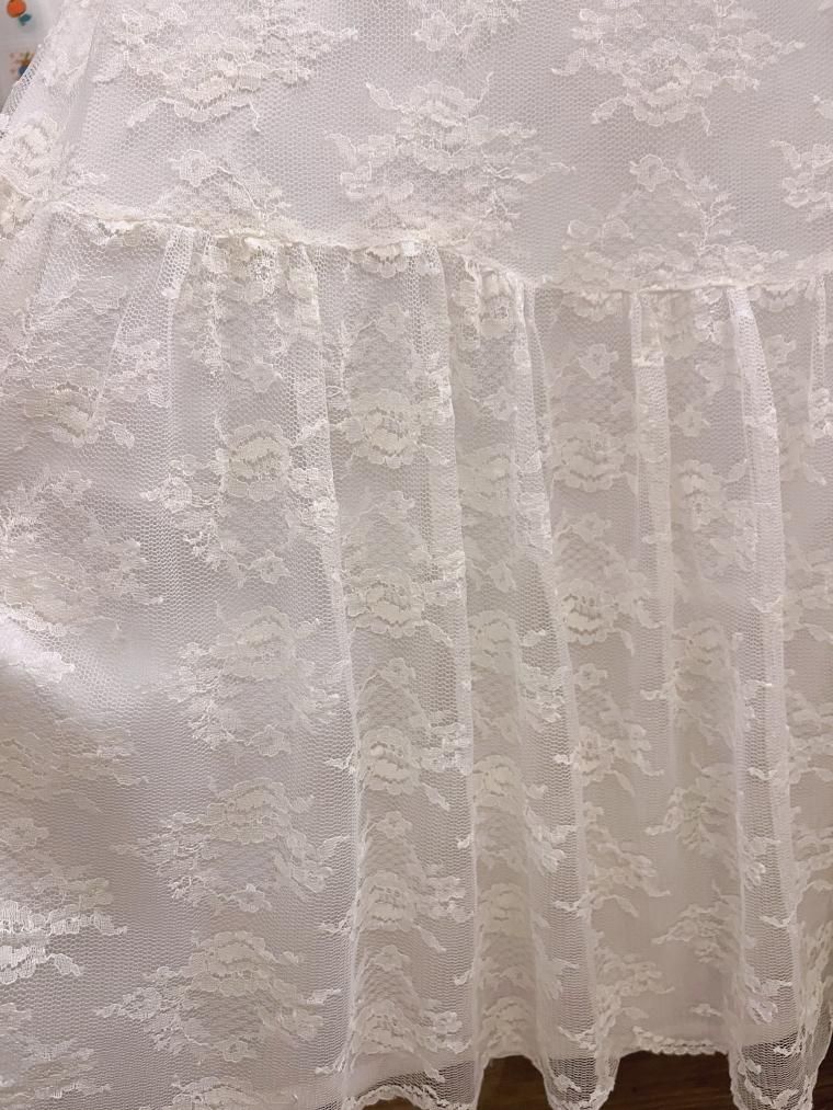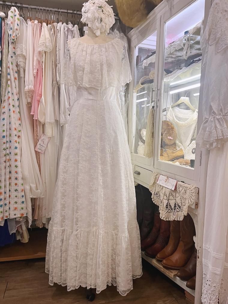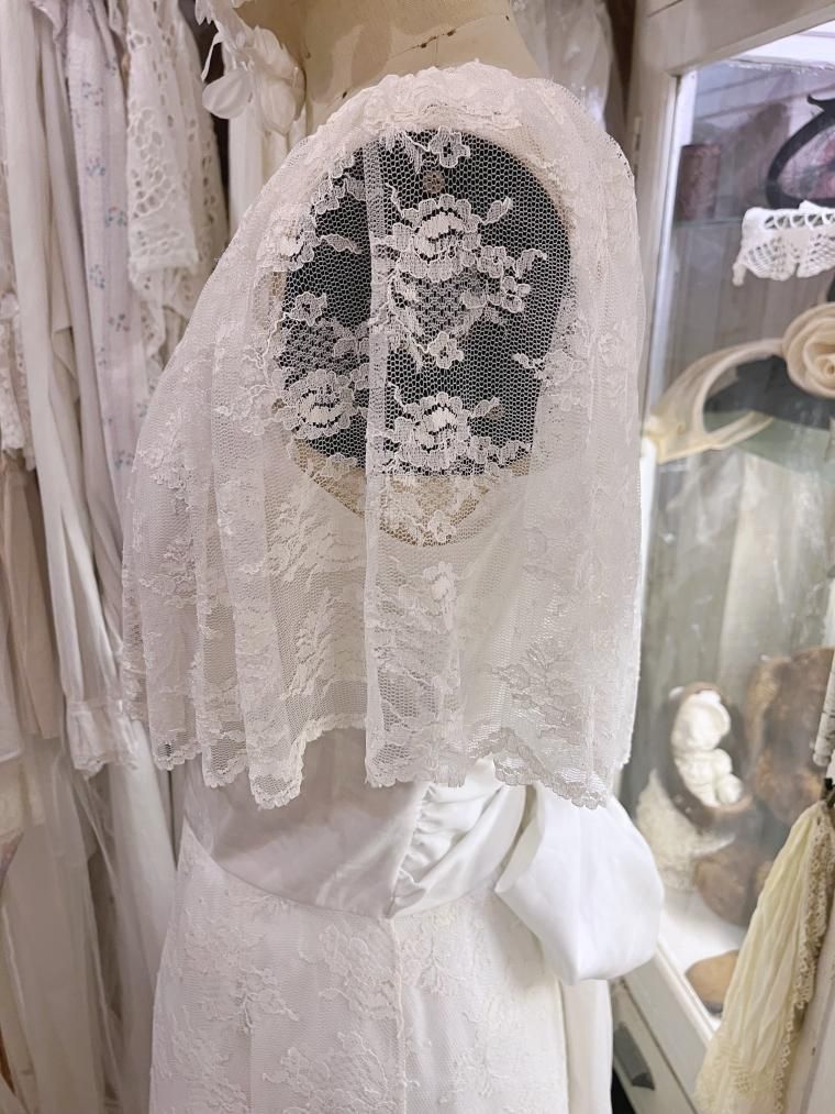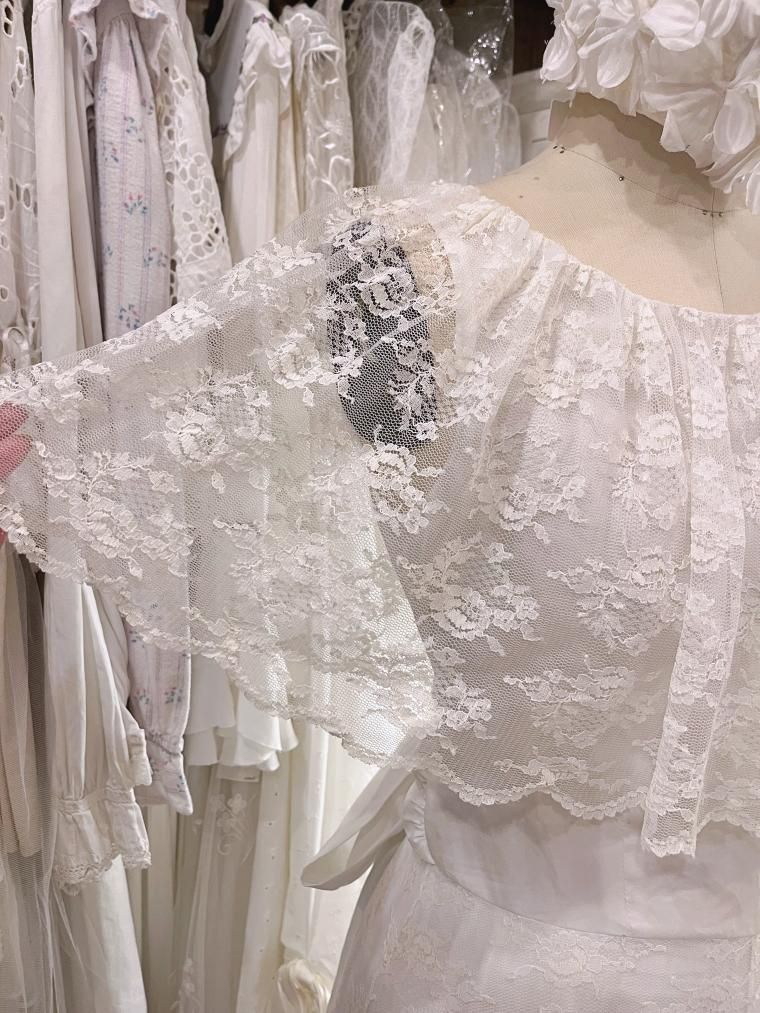 Vintage ケープカラーホワイトレースワンピースドレス u1618