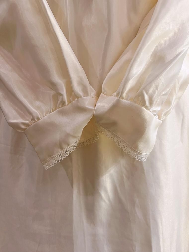 vintage nightie 60s リボンレースロマンチックロングガウン オフホワイト