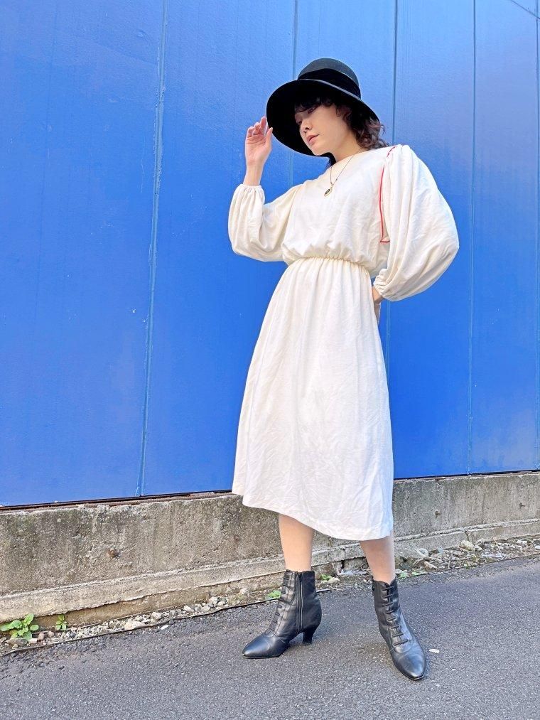 Vintage ミモレ丈ウエストゴムクリームワンピース Size 16 2121d