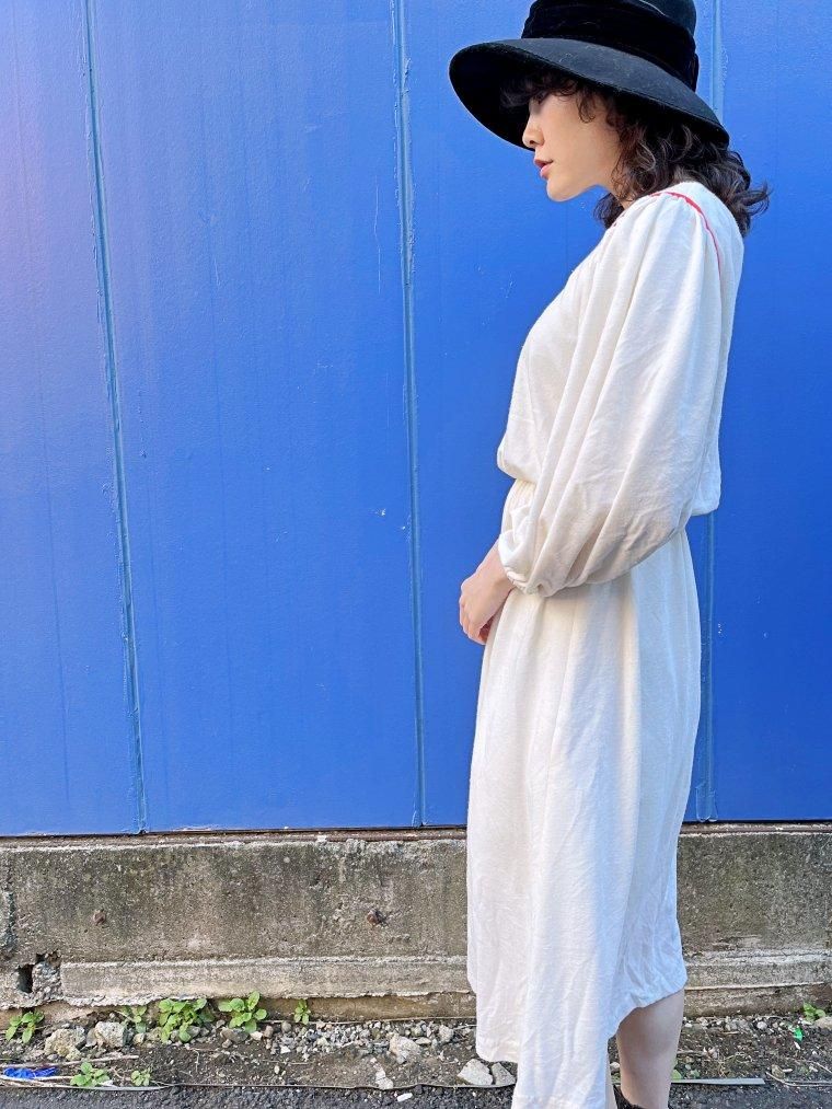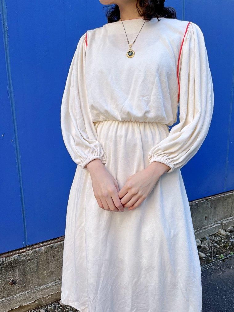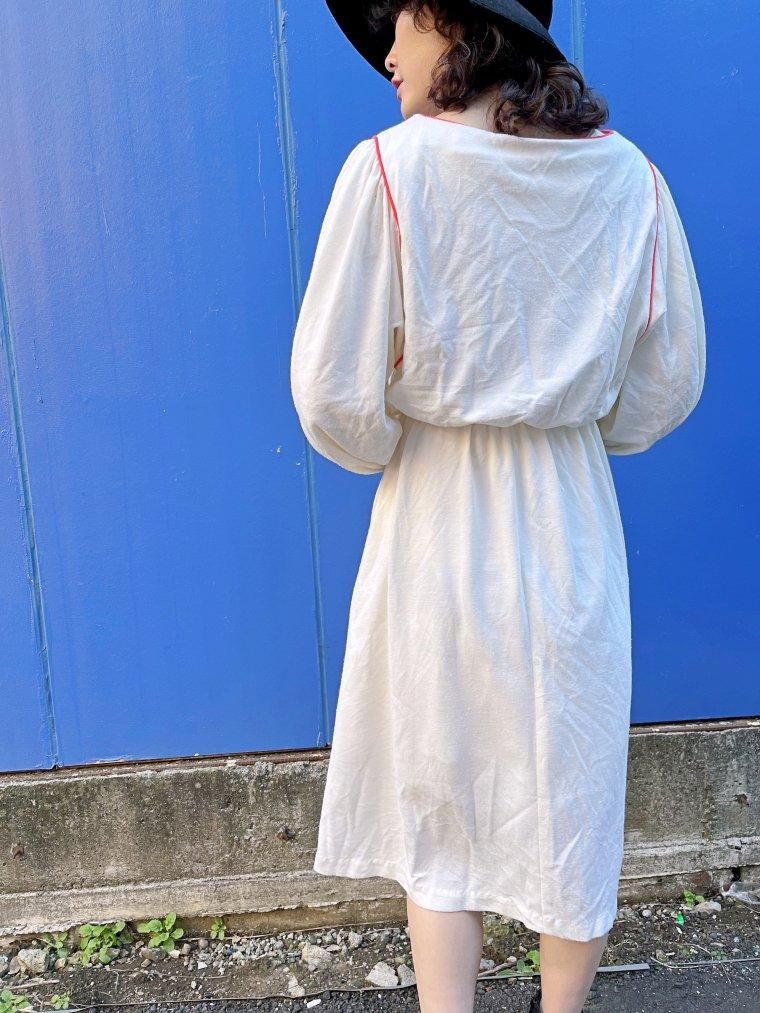 vintage U.S.A. レースカラーレーヨンオフホワイトワンピース