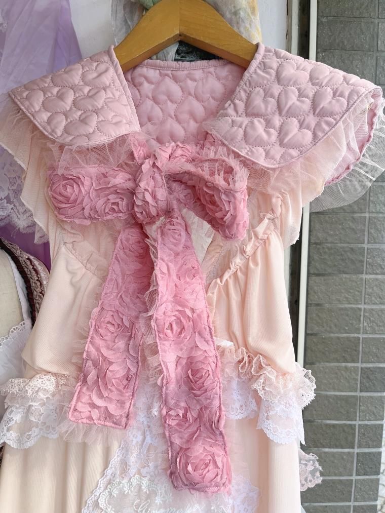 【10%OFF】dentelle remake パールピンクランジェリーレースフリルワンピース