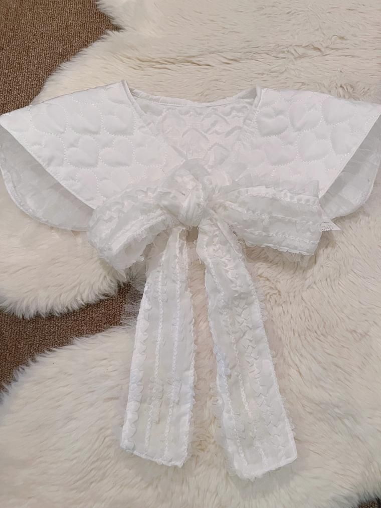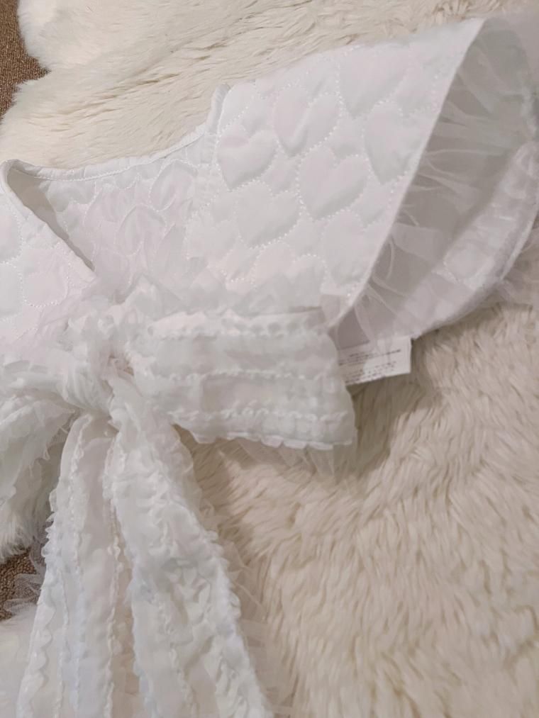 ラッフルフリルシャーリングスリーブホワイトブラウス