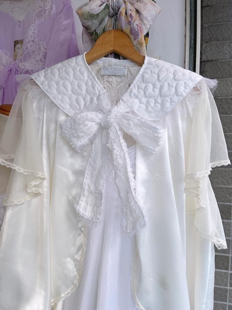 vintage nightie 60s リボンレースロマンチックロングガウン オフホワイト