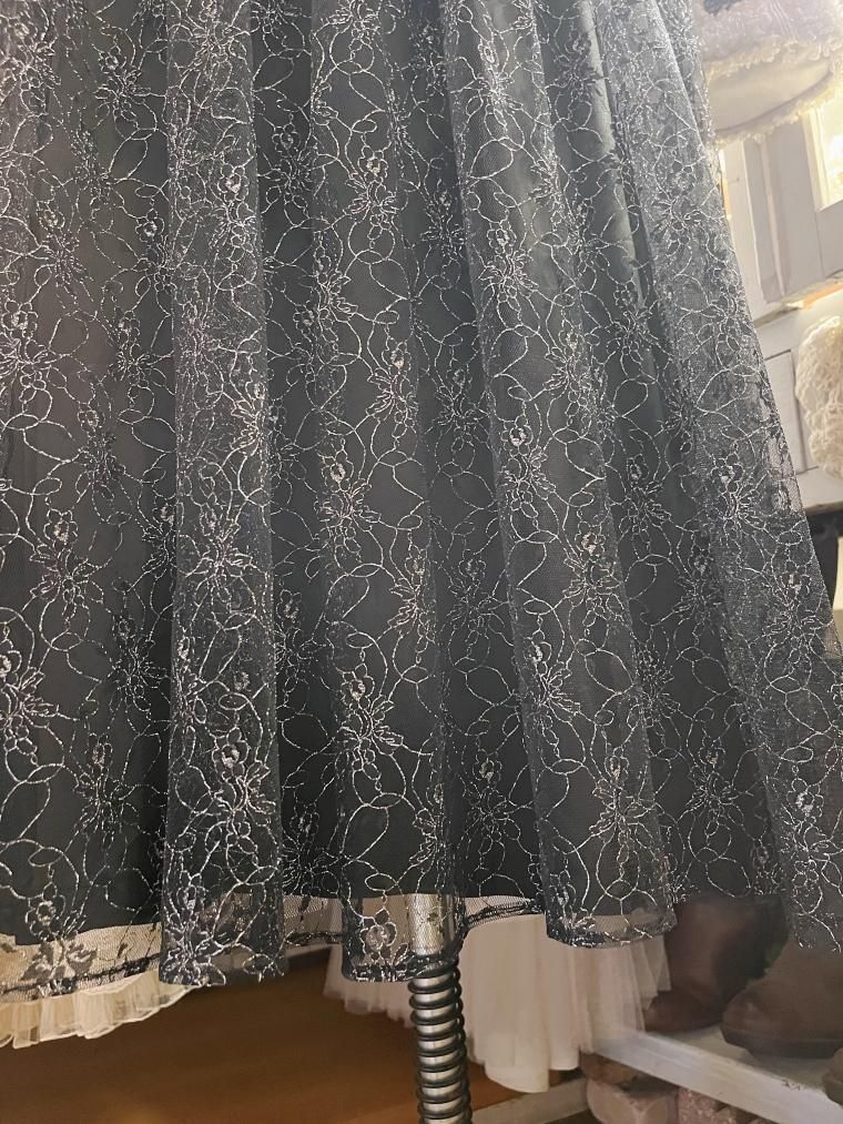 Vintage 裾レースコットンフレアブラックスカート