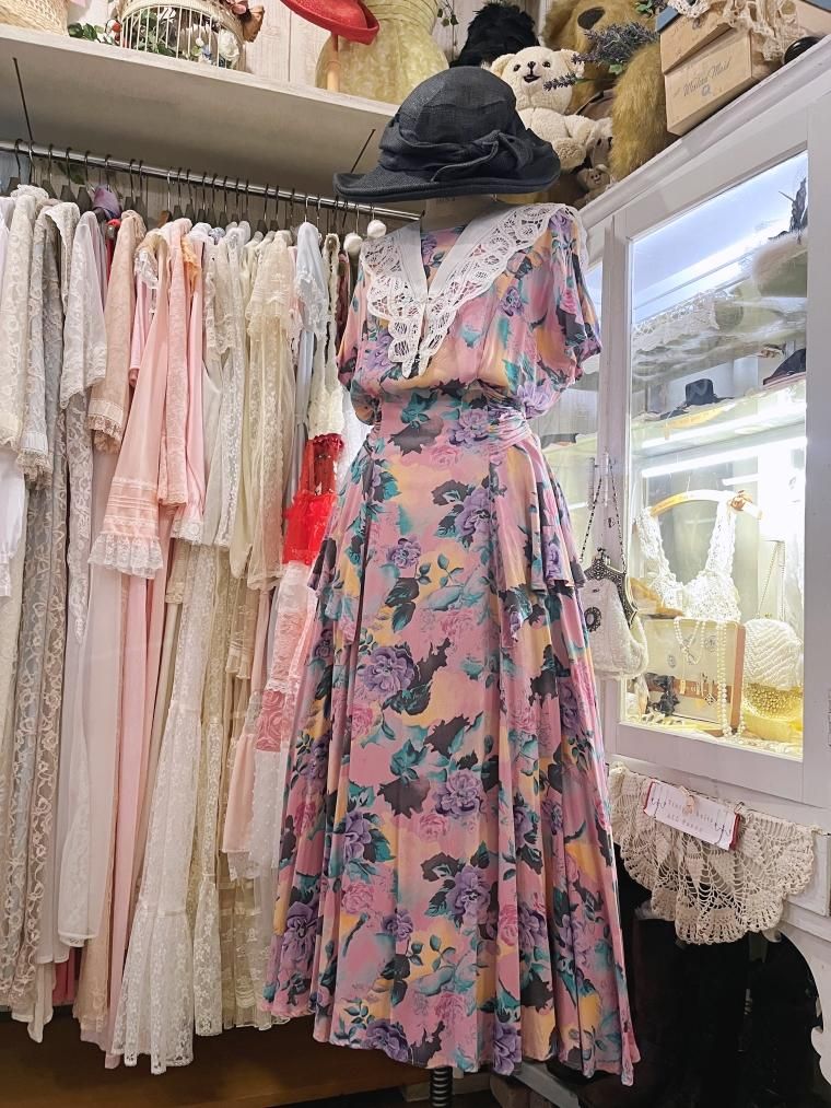 vintage U.S.A. フローラルロング丈ティードレス