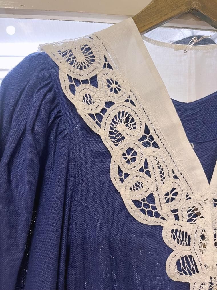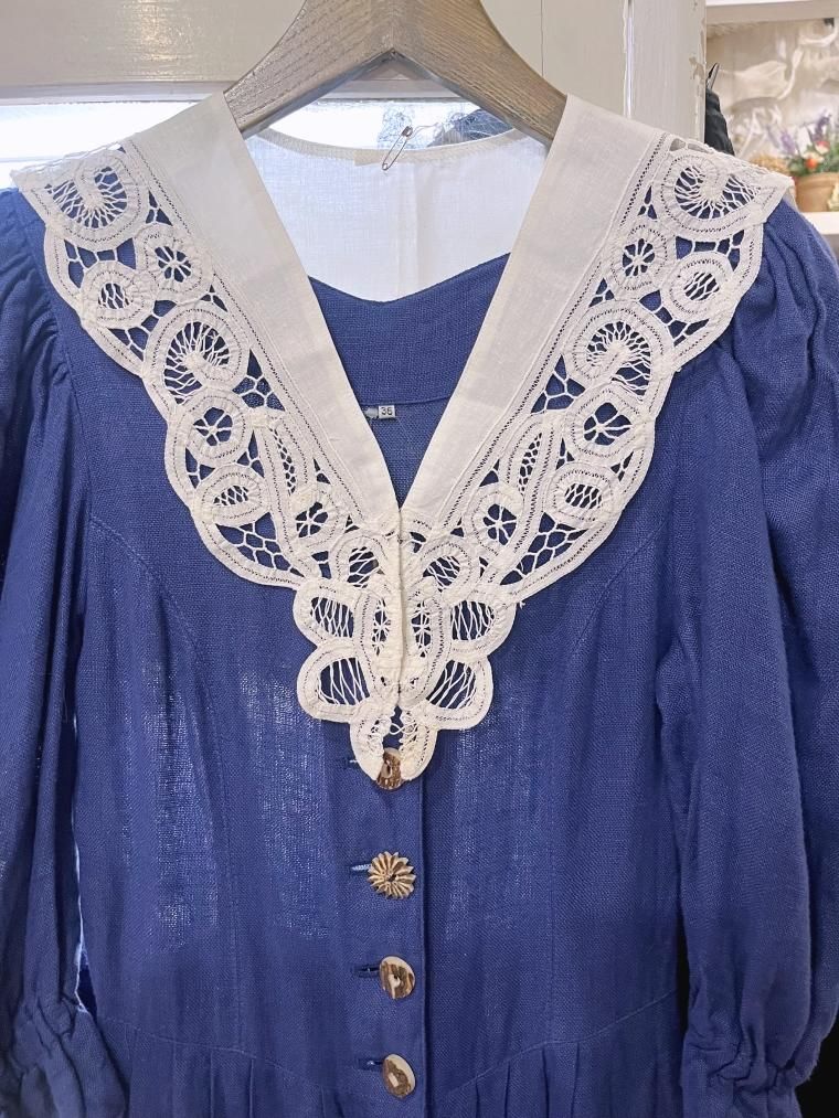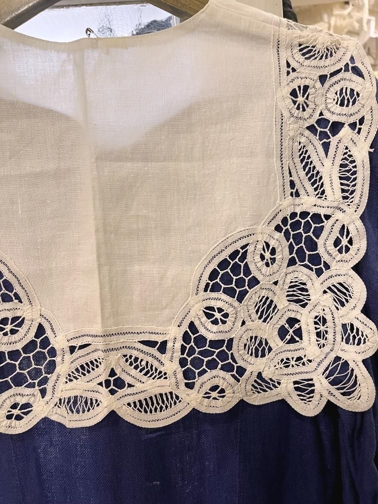 ダブルレースカラーロマンチックホワイトリネンチロルブラウス
