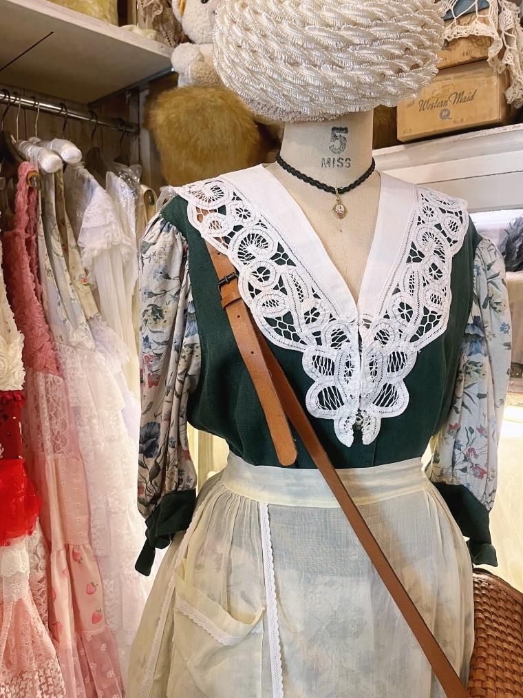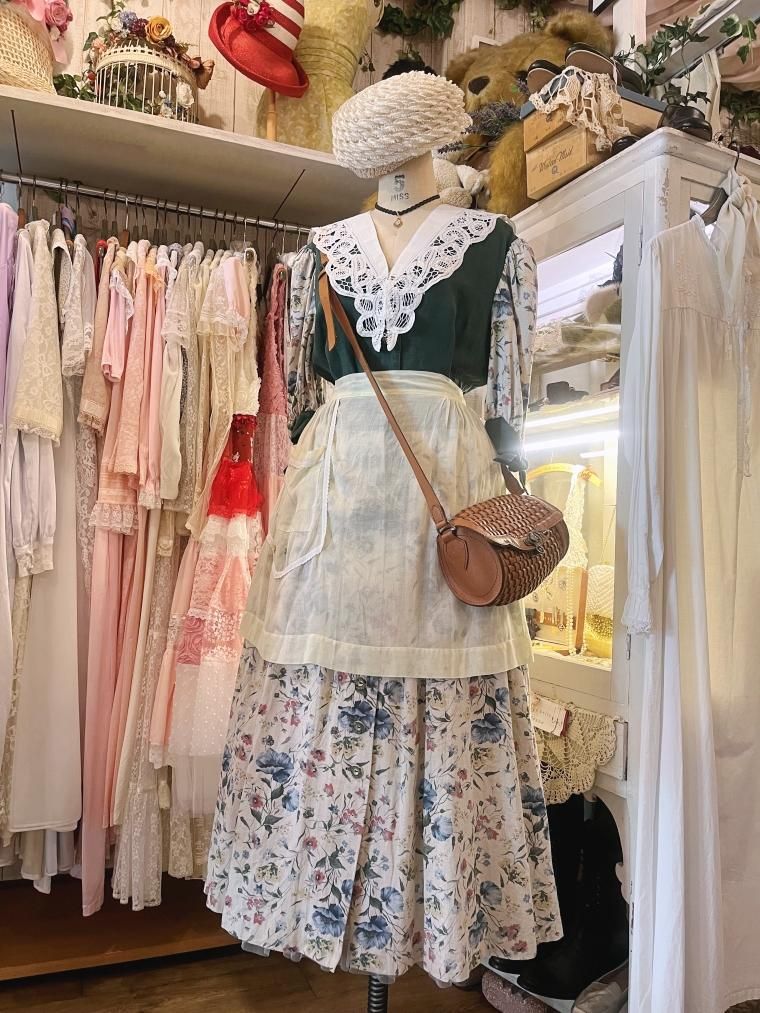 Vintage エンブロイダリーコットンハーフエプロン