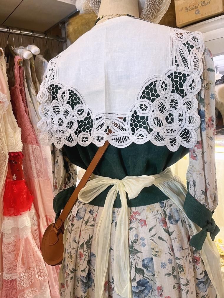 vintage U.S.A. レースカラーレーヨンオフホワイトワンピース