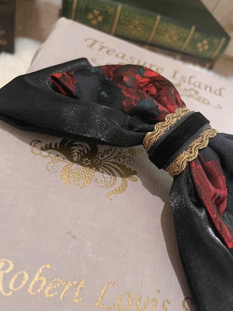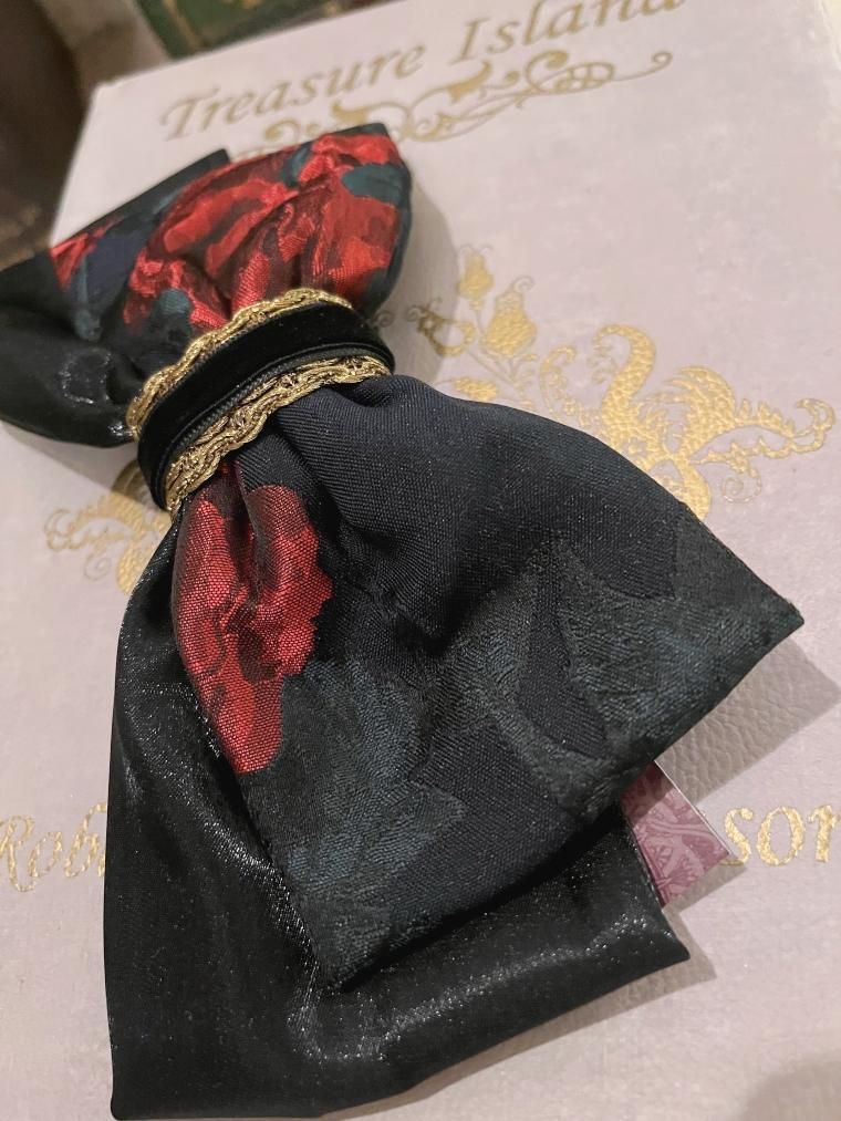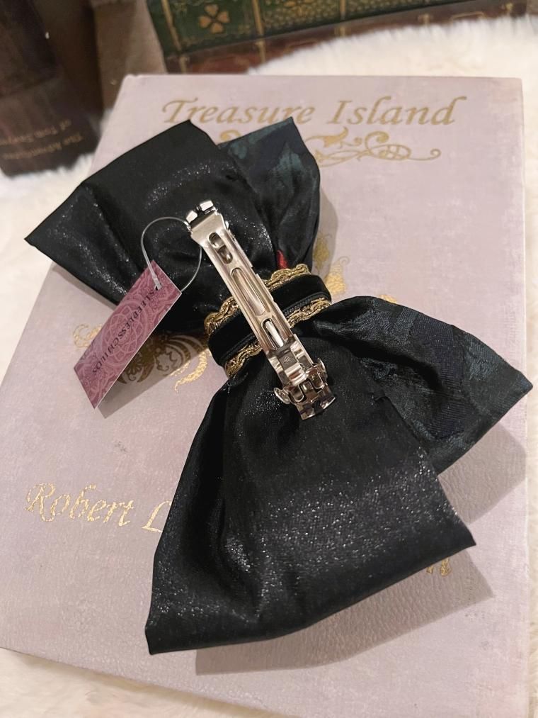 SLEEPLESSCHILDS ダマスク柄ロングブラックリボンクリップ