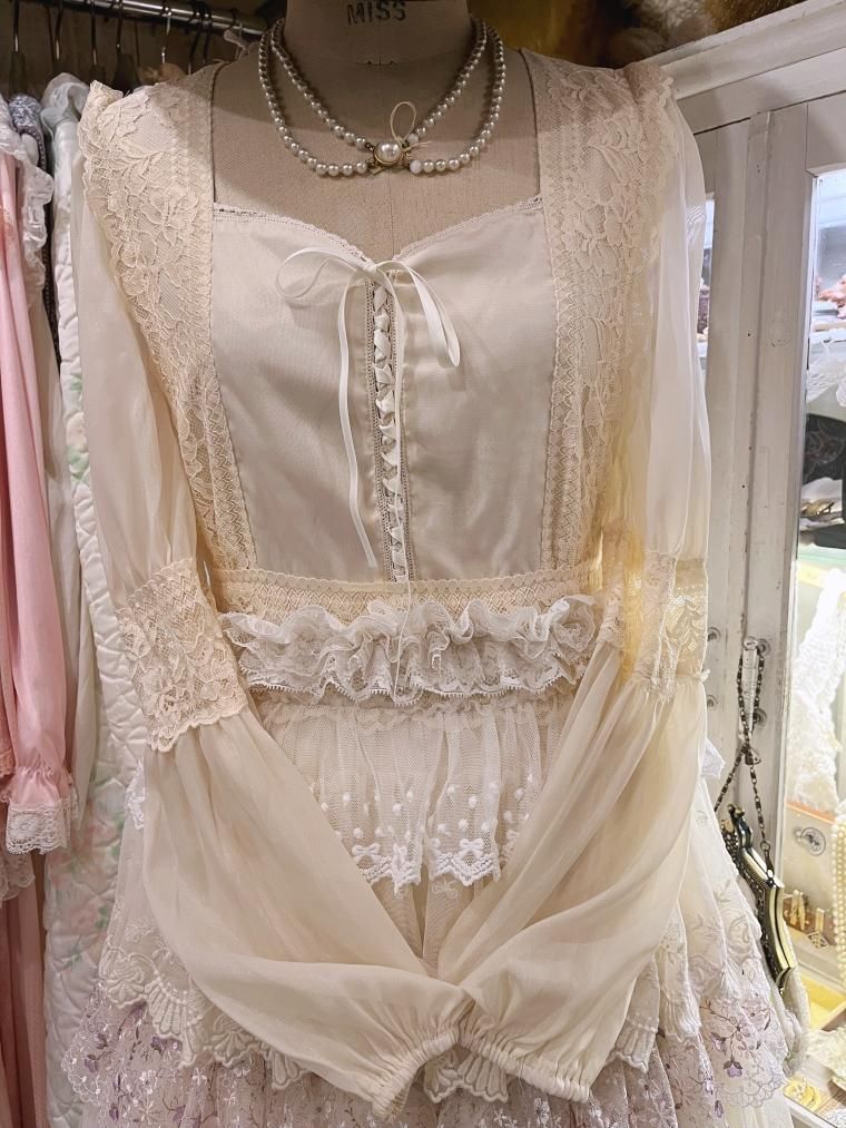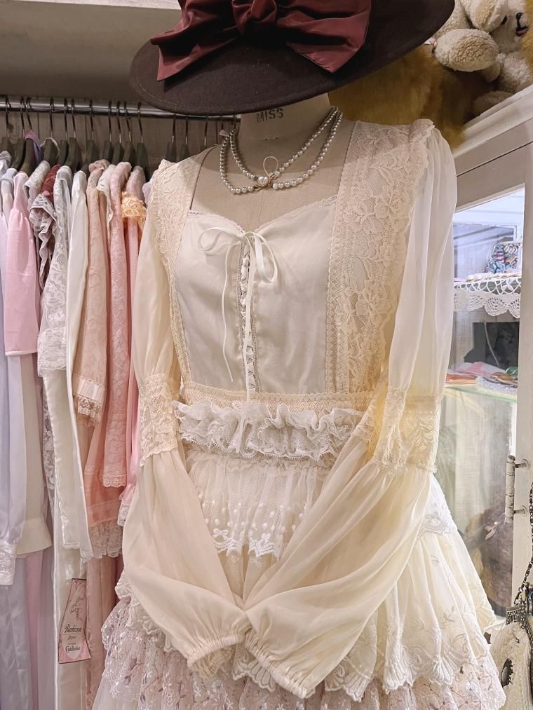 ダブルレースカラーロマンチックホワイトチロルブラウス