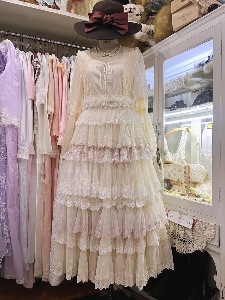 vintage GUNNE SAX 70's オールチュールレースヴィクトリアンワンピースドレス Size約S