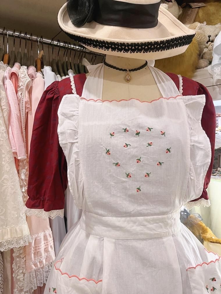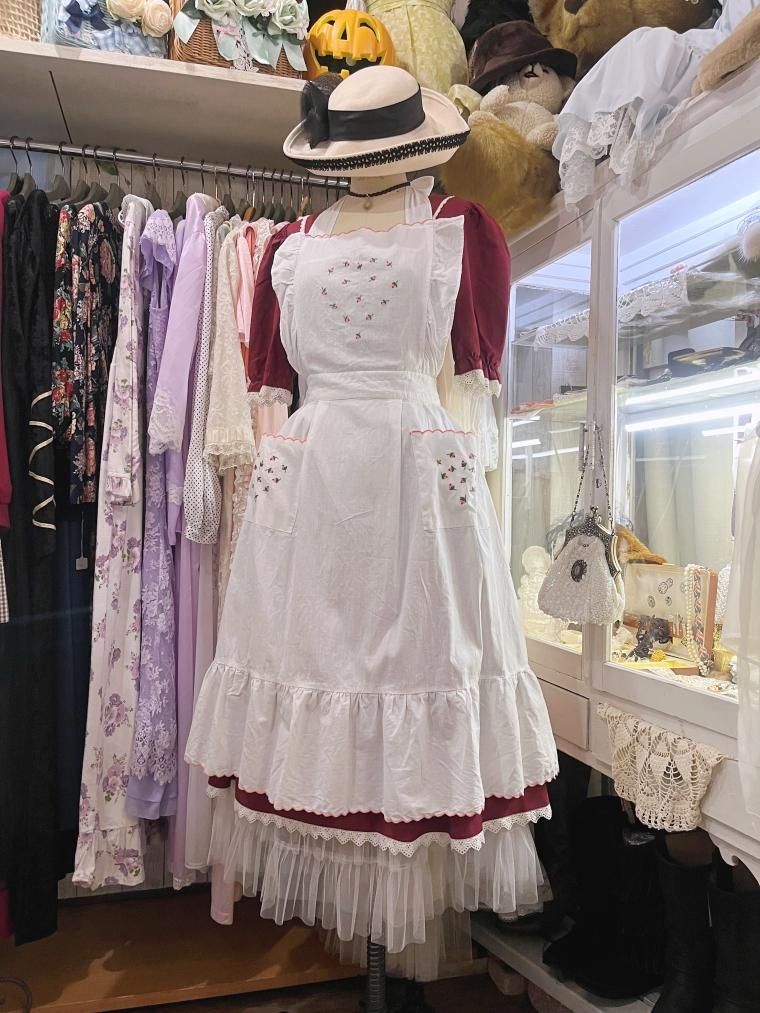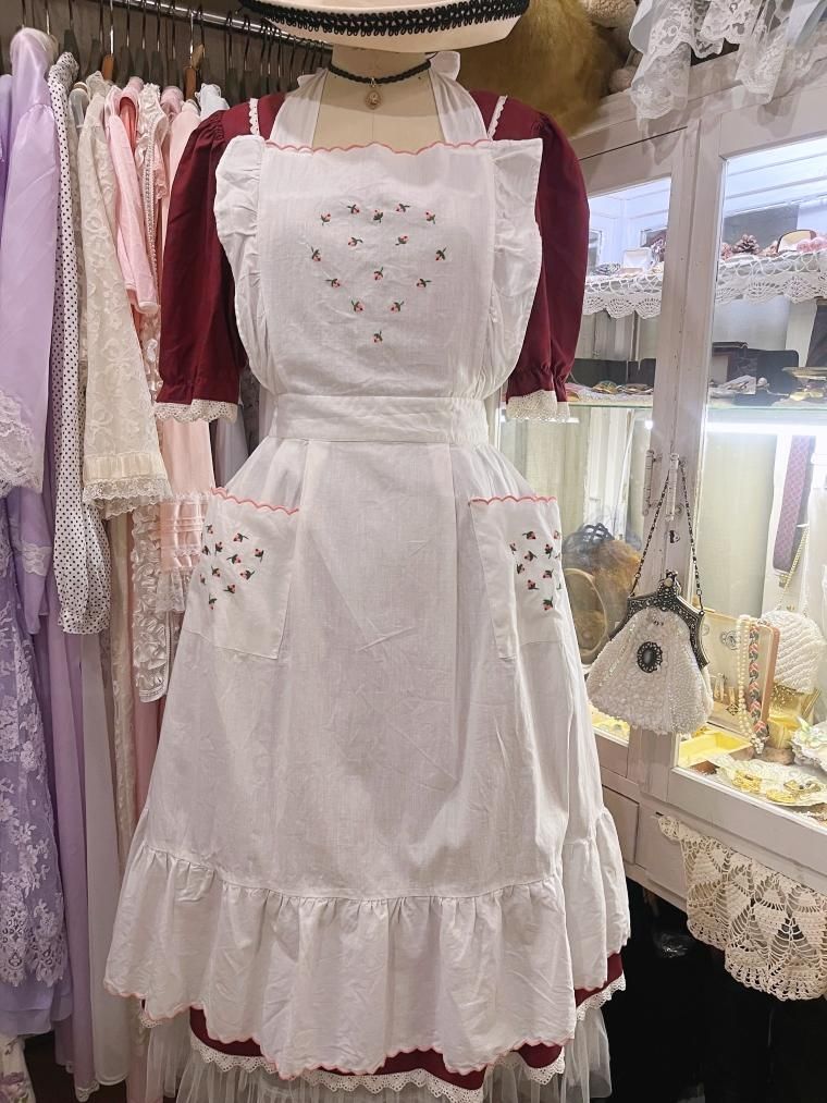 Vintage ミニローズ刺繍コットンレースホワイトエプロン 257269
