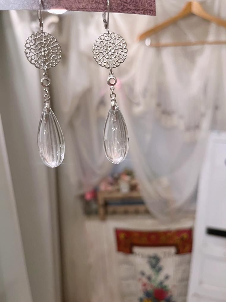 透明のドロップビーズが綺麗な