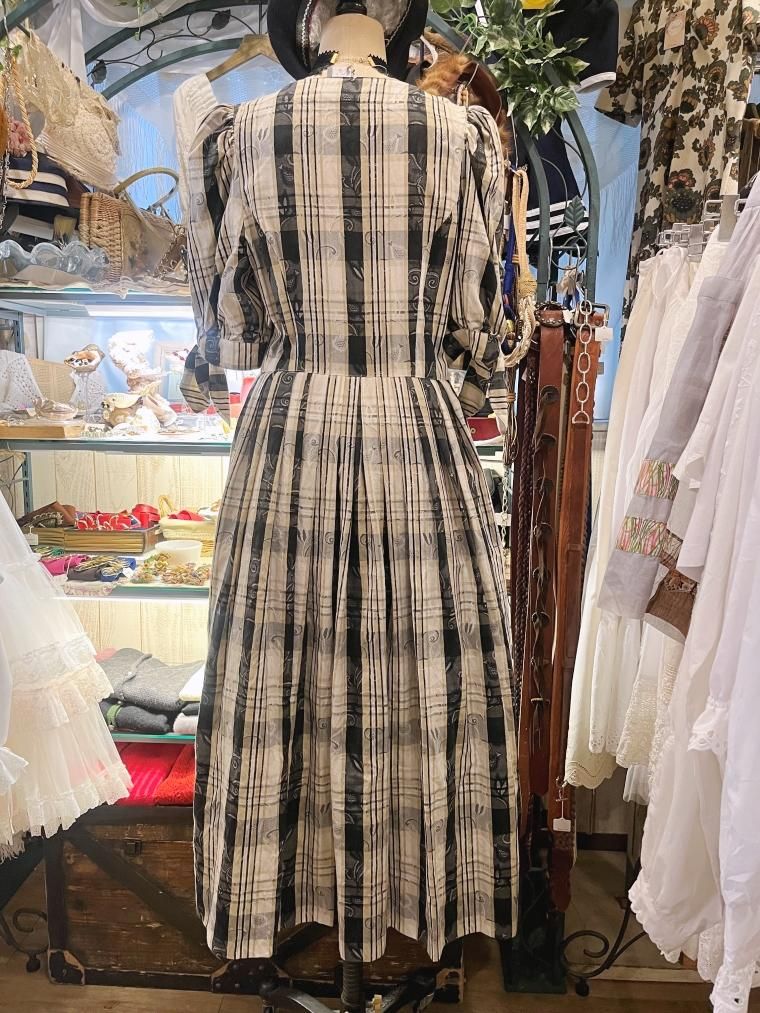 柄が織り込まれた独特なテキスタイルのワンピースです。