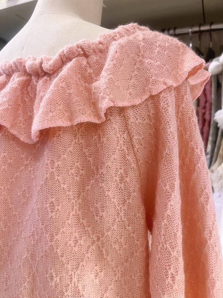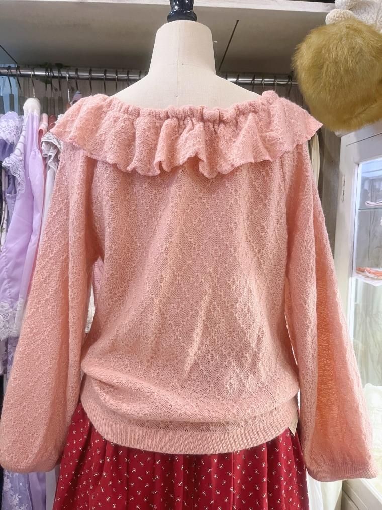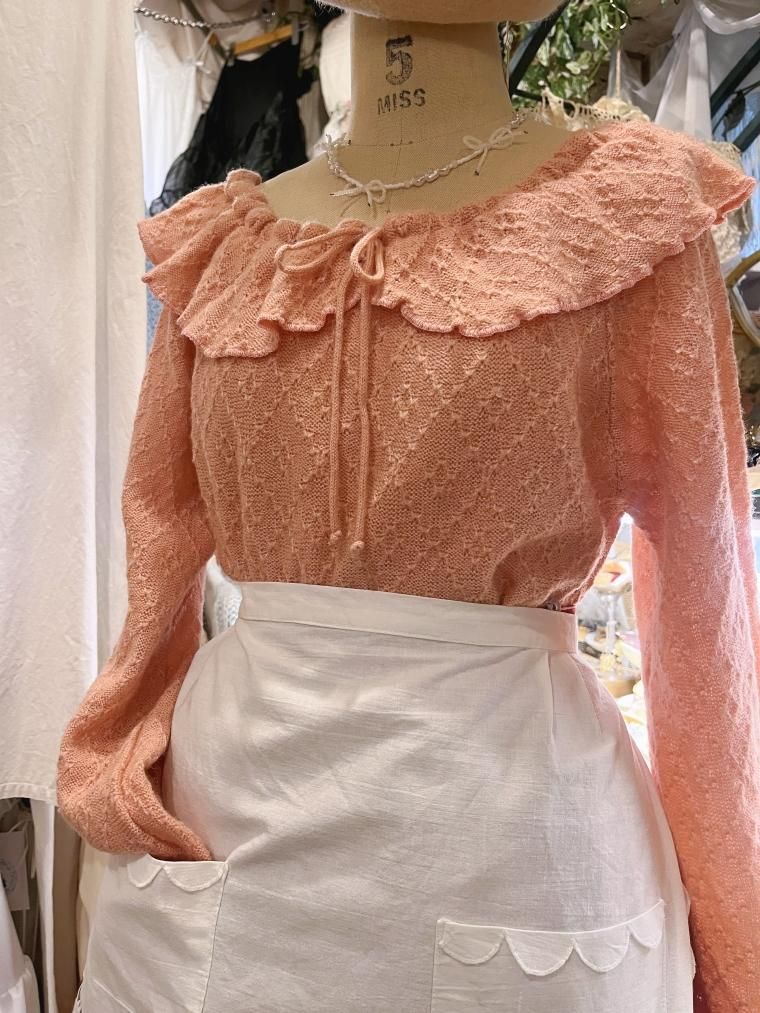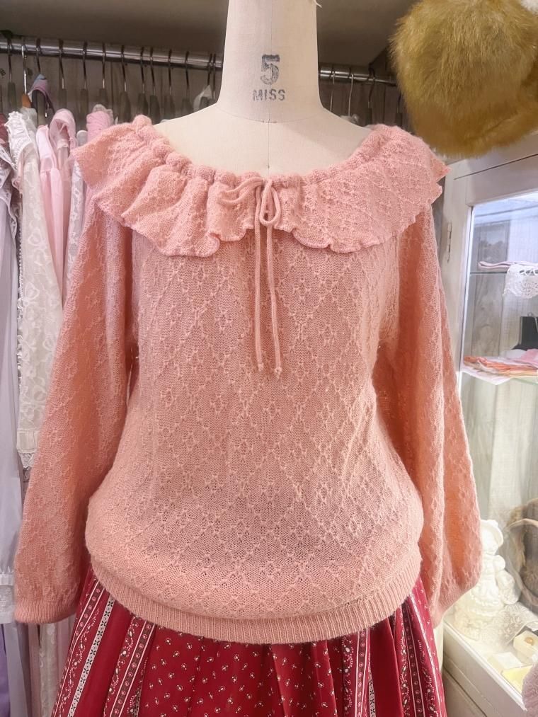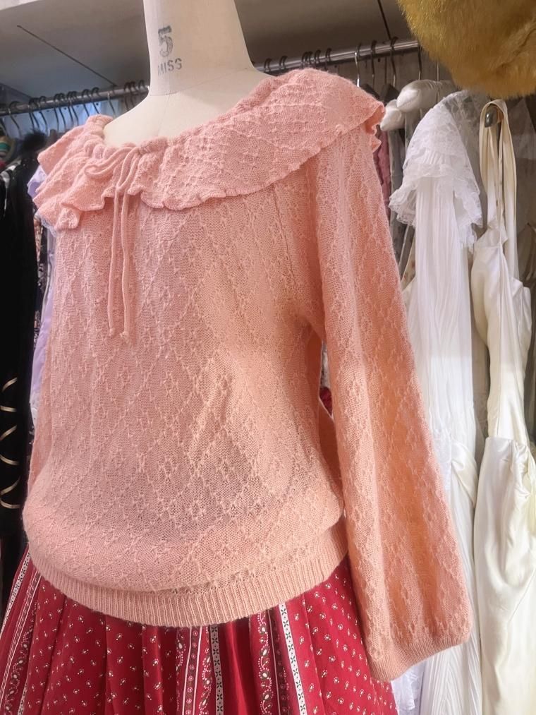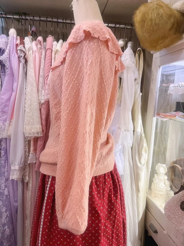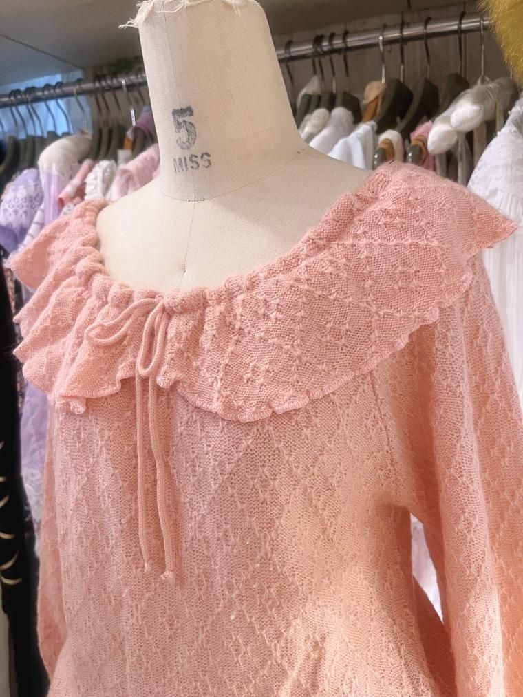 Vintage ペプラムラインパステルピンクニットカーディガン