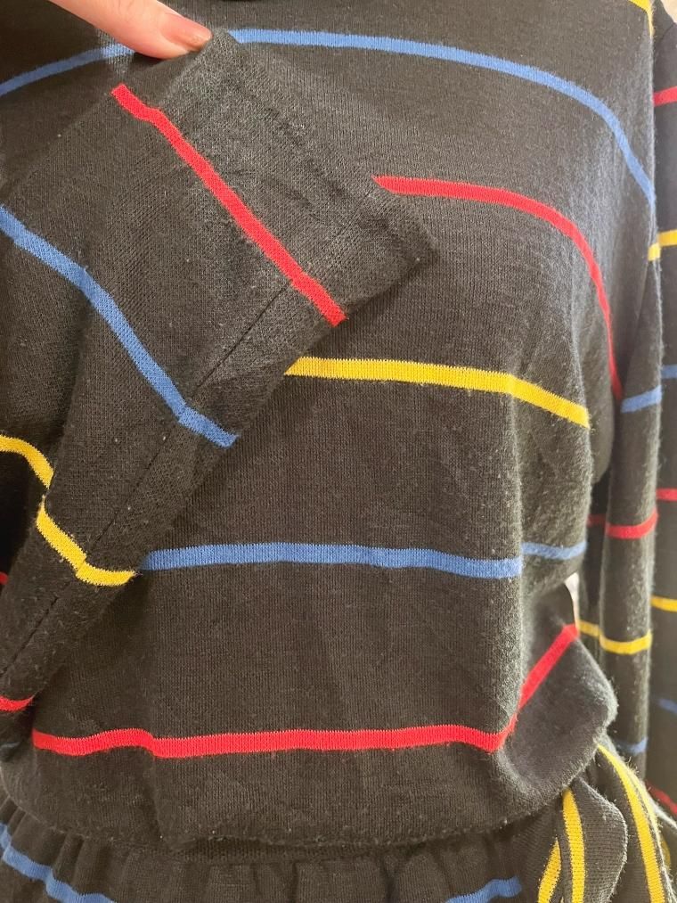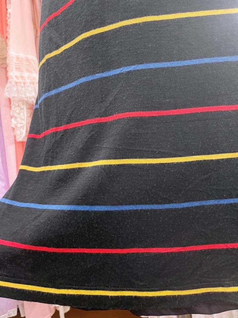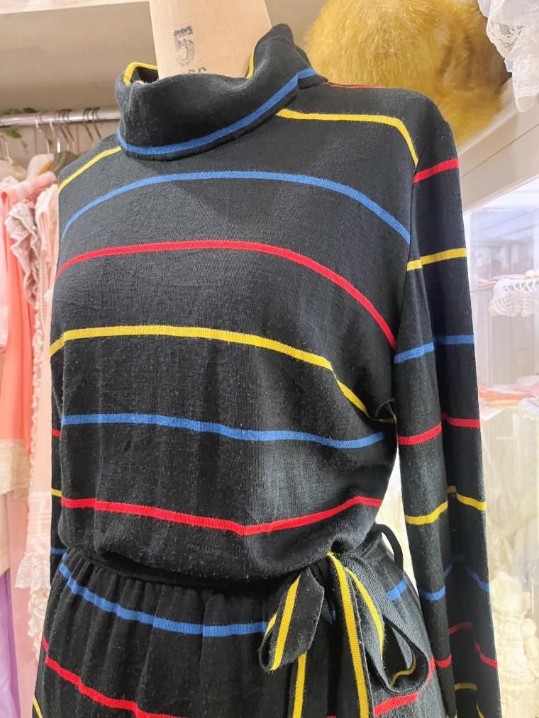 ロールカラーカラフルボーダーブラックワンピース 25707