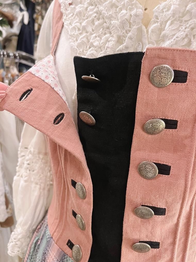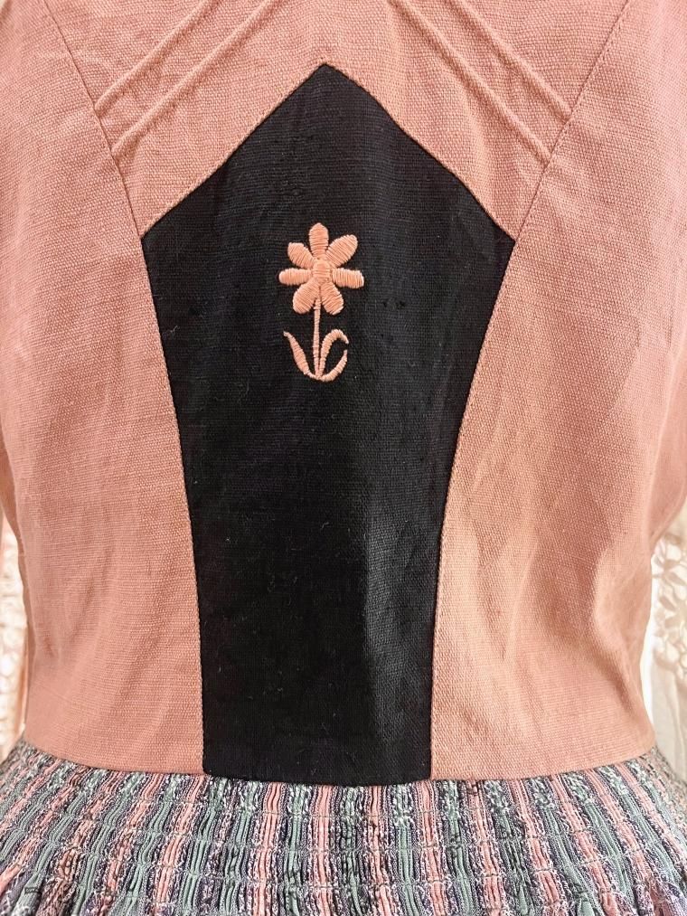 エーデルワイスモチーフバイカラーリネンジャンパースカート