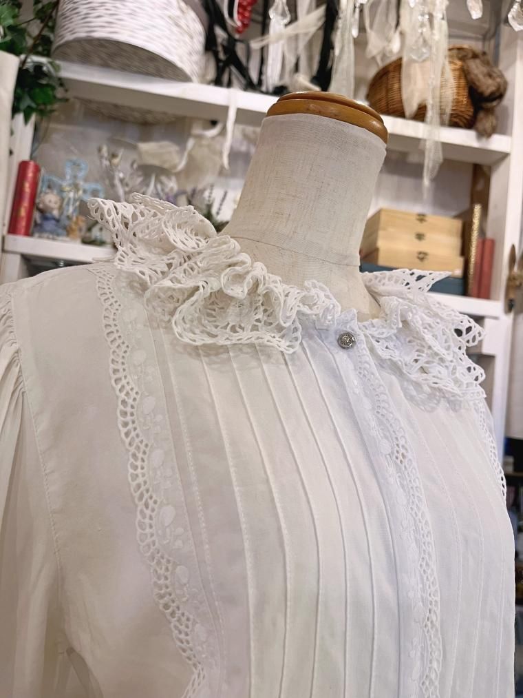 ダブルレースカラーロマンチックホワイトリネンチロルブラウス