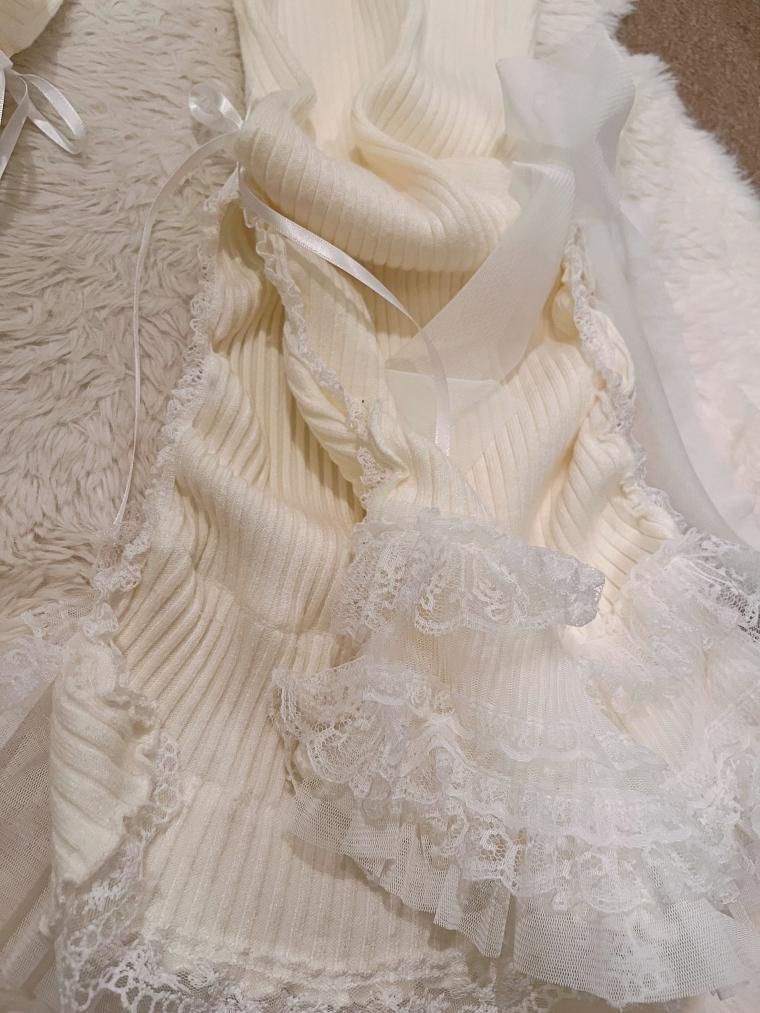 ダブルレースカラーロマンチックホワイトリネンチロルブラウス