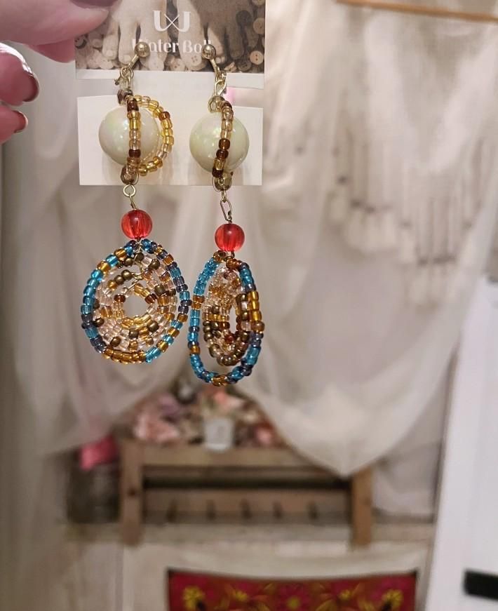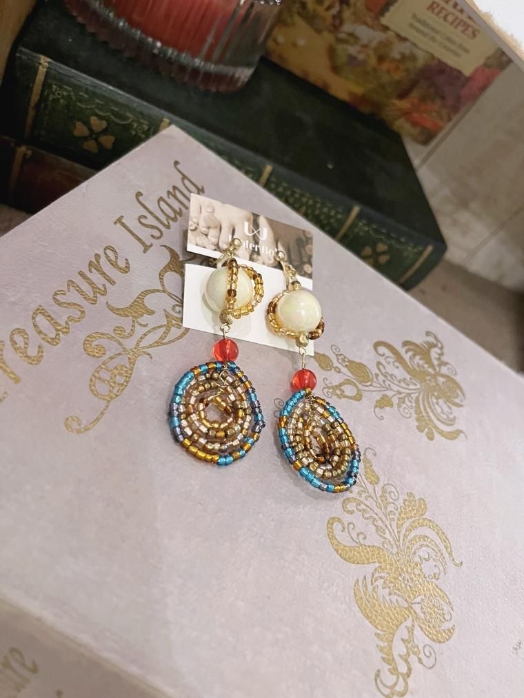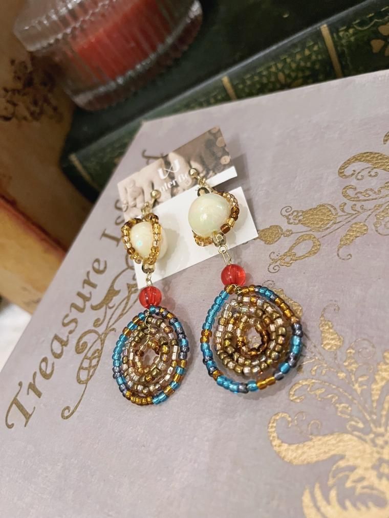 Water Ball ハンドメイド 渦巻きビーズイヤリング
