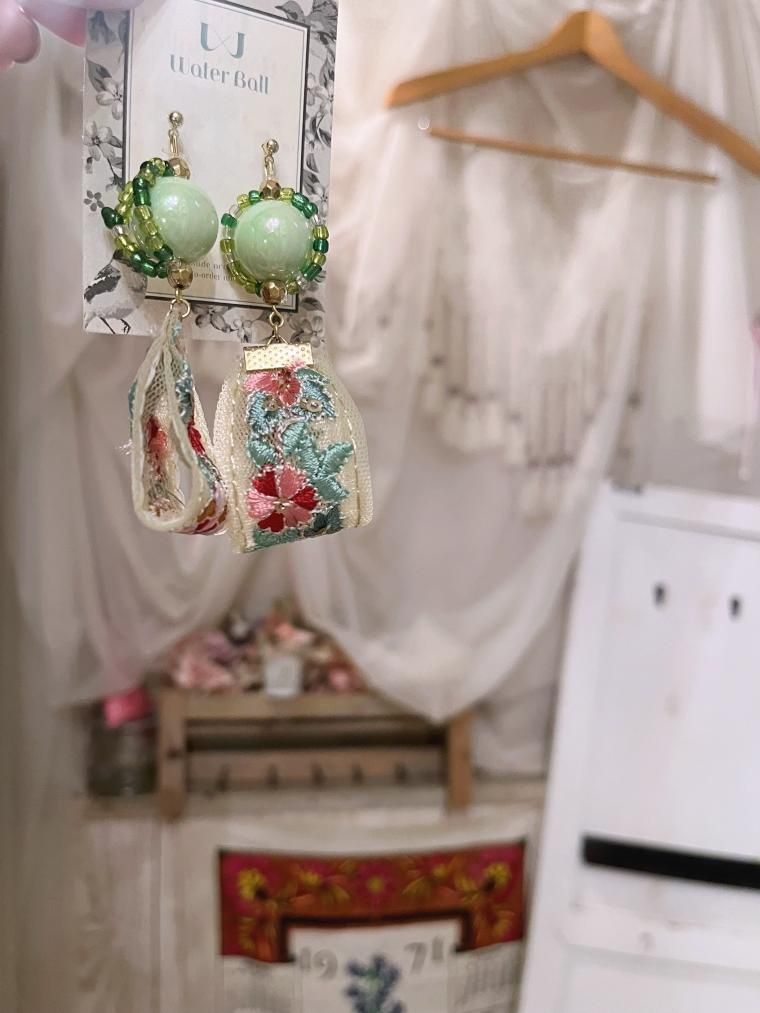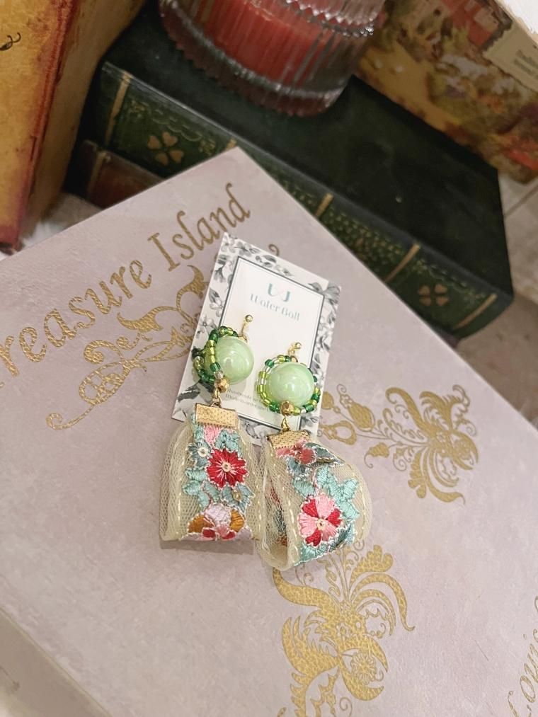 Water Ball ハンドメイド インド刺繍リボンピアス CG-5
