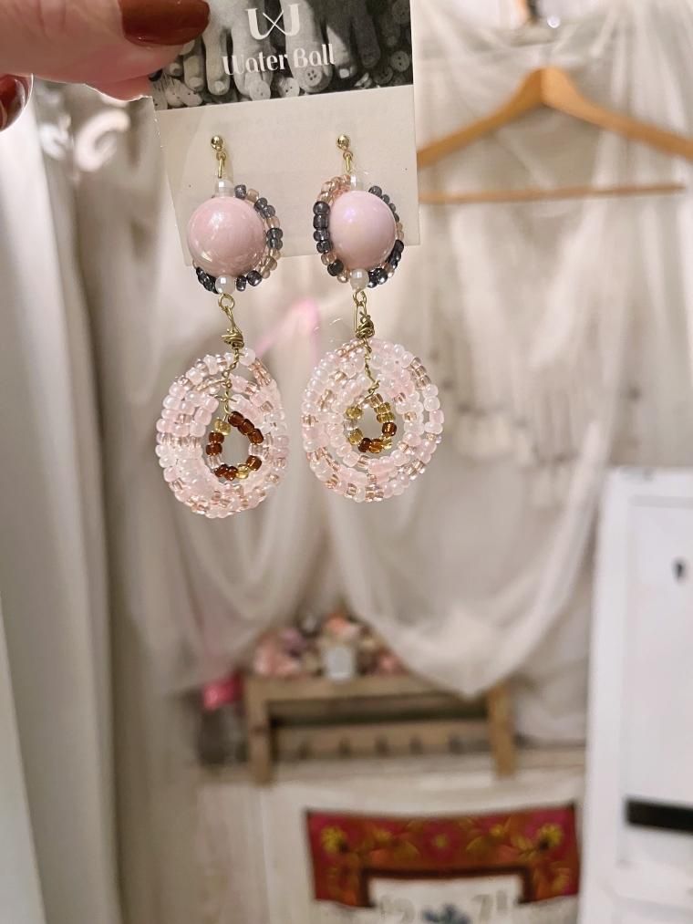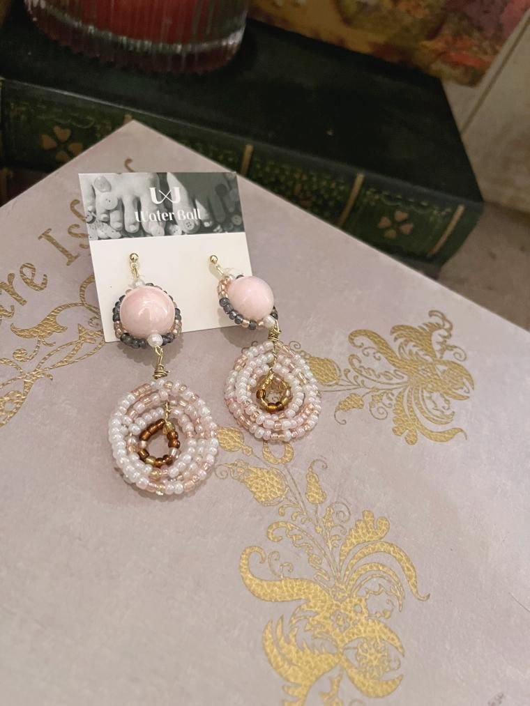 Water Ball ハンドメイド 渦巻きビーズイヤリング