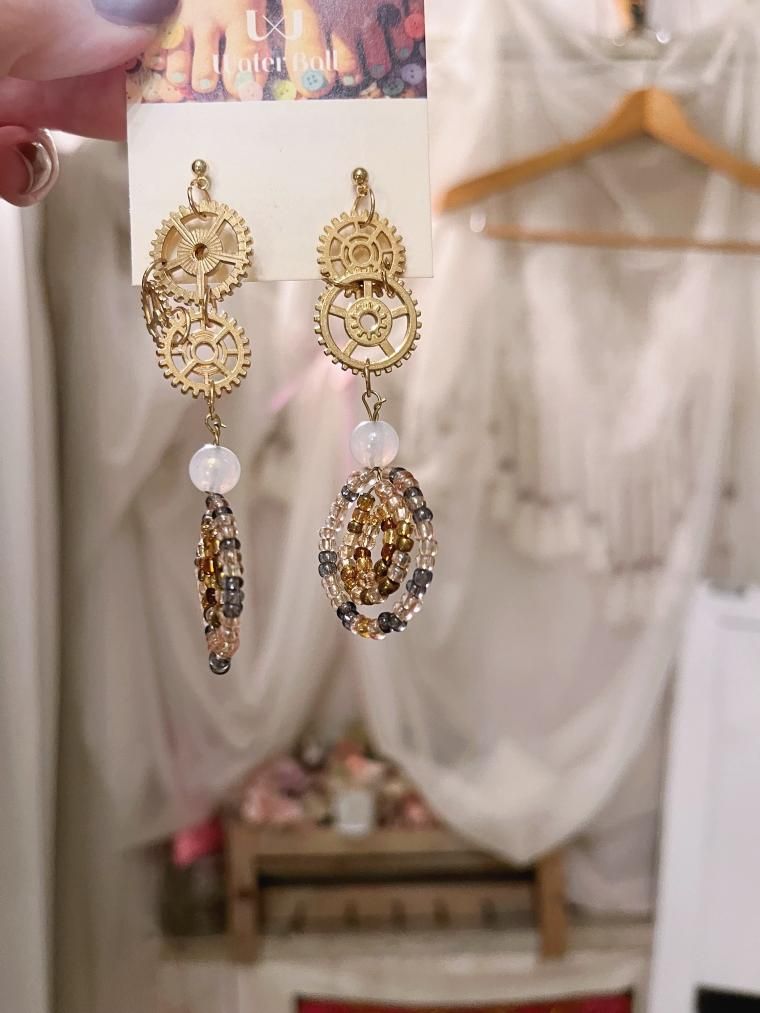 Water Ball ハンドメイド 歯車渦巻きビーズロングピアス