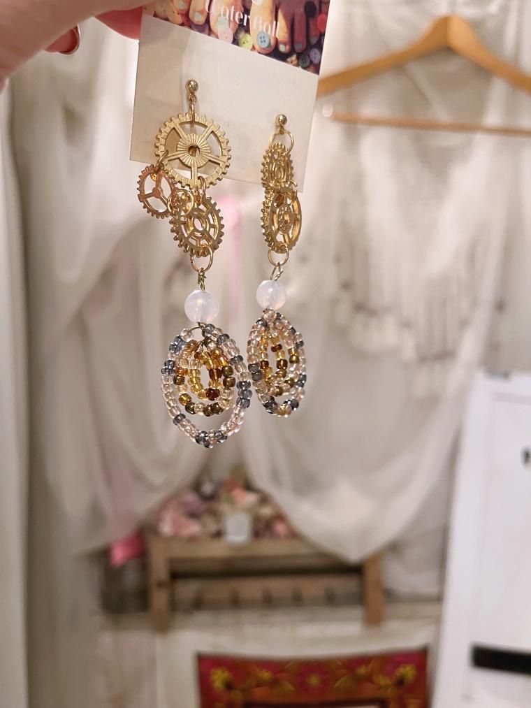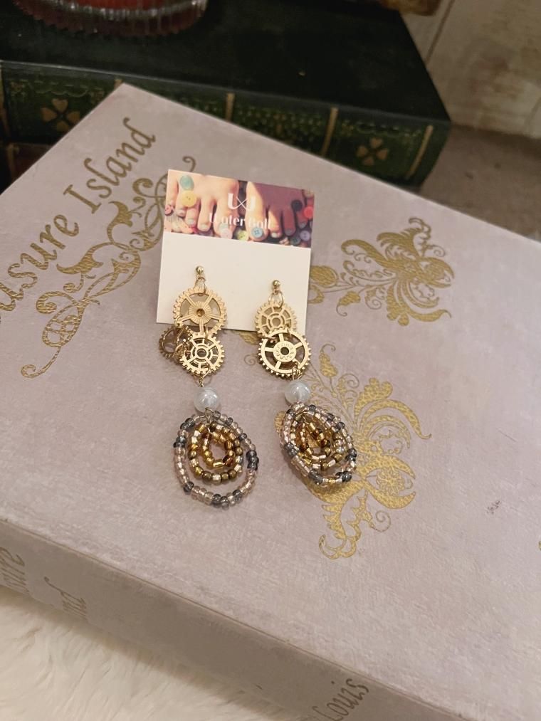 Water Ball ハンドメイド 歯車渦巻きビーズロングピアス CG-7