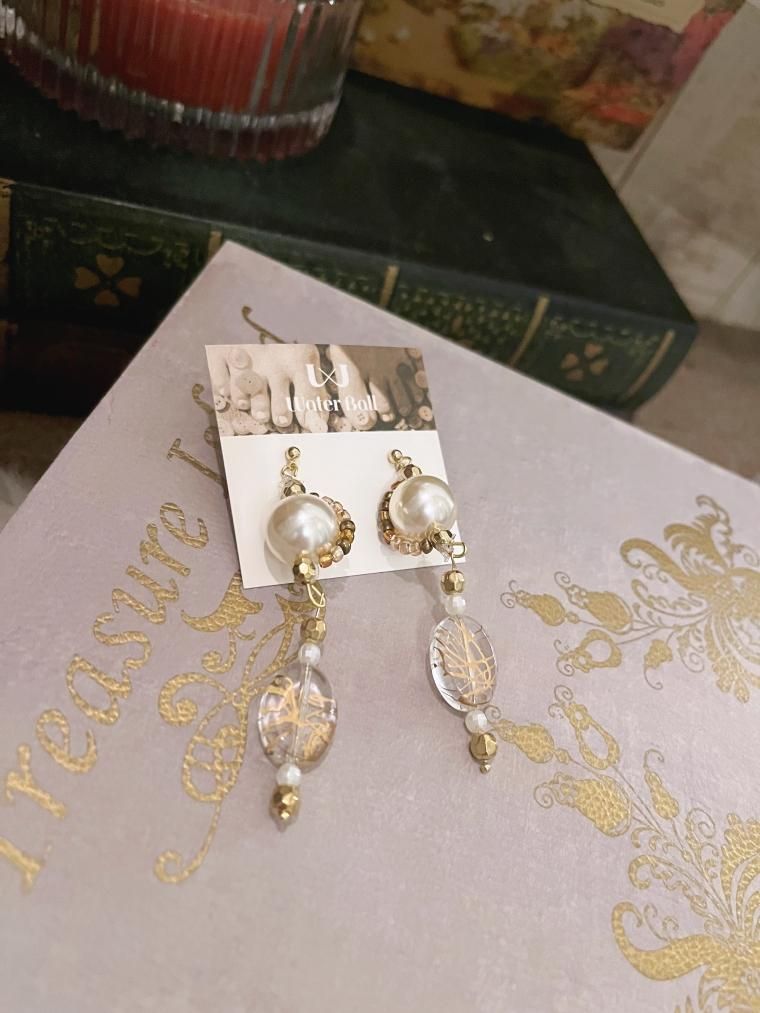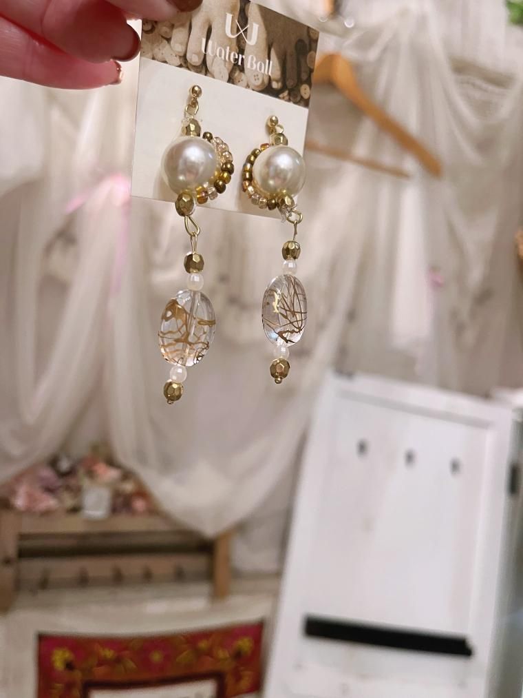 Water Ball ハンドメイド パールビーズロングイヤリング