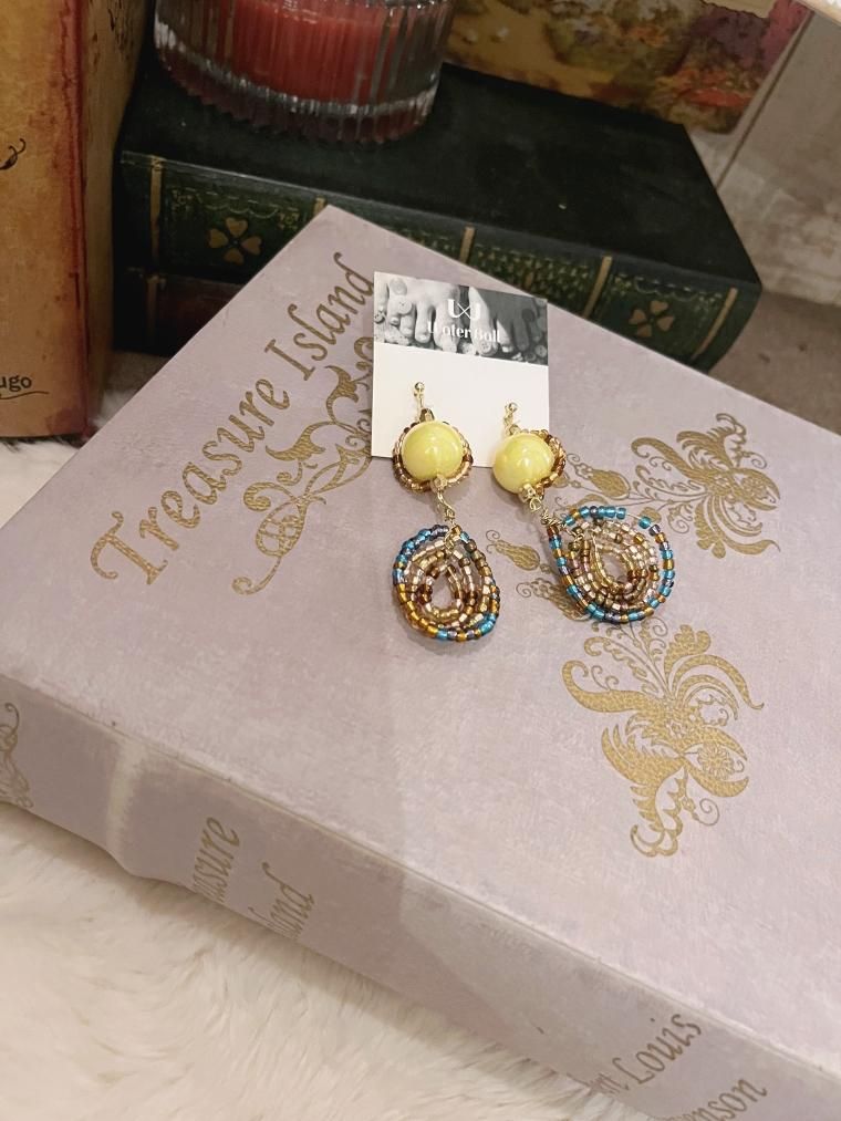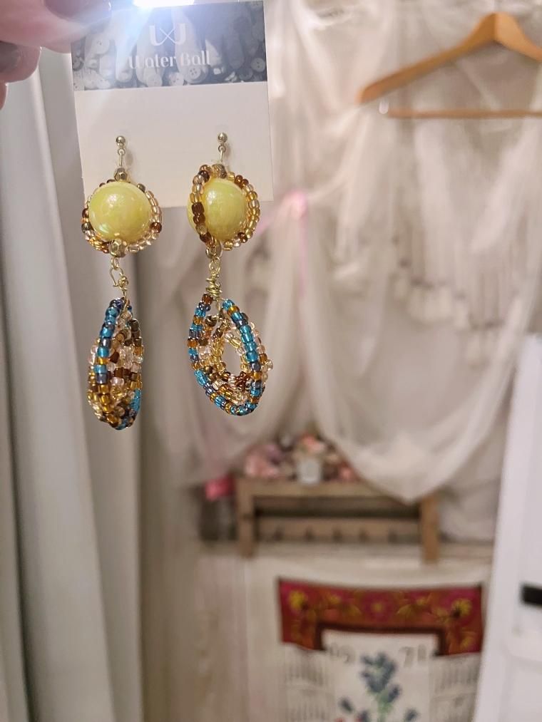 Water Ball ハンドメイド 渦巻きビーズイヤリング